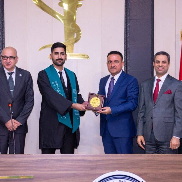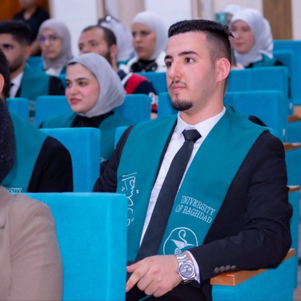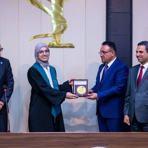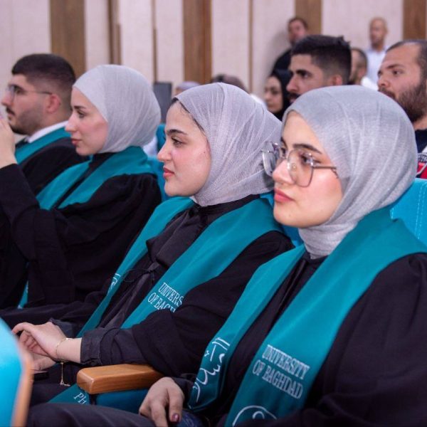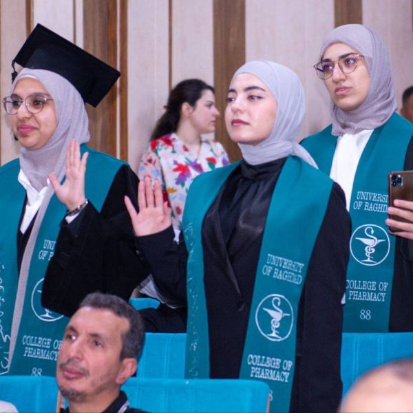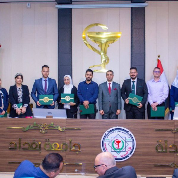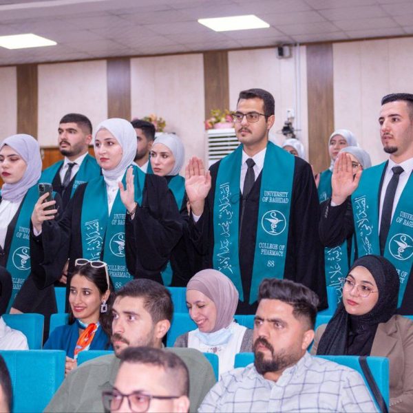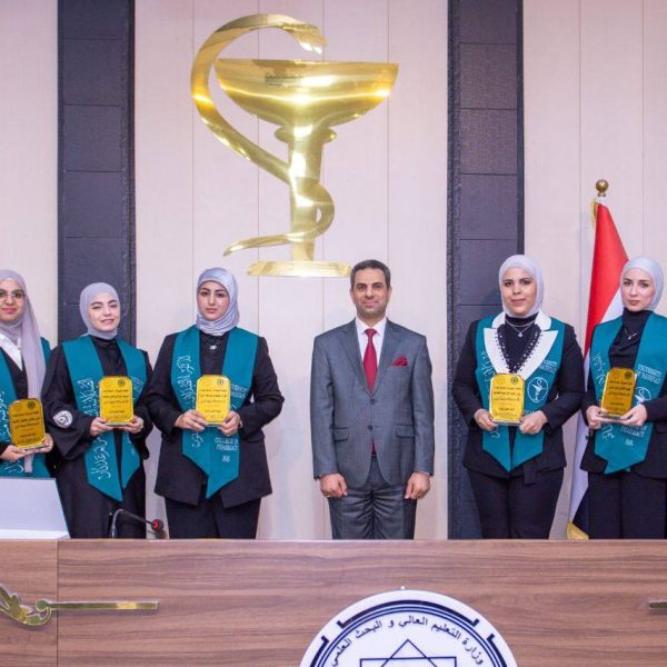 The ceremony was attended by a distinguished group of academic and official figures, led by the President of the University of Baghdad, Professor Dr. Bahaa Ibrahim Insaf, Manager of Medical City, Professor Dr. Hassan Mohammed Al-Tamimi, and Scientific Assistant of Baghdad Teaching Hospital, Pharmacist Dr. Kawthar Fares Al-Tamimi. Also present were a number of faculty members and students from the Clinical Pharmacy Board, who shared in the joy of this remarkable academic achievement with the graduates and their families.