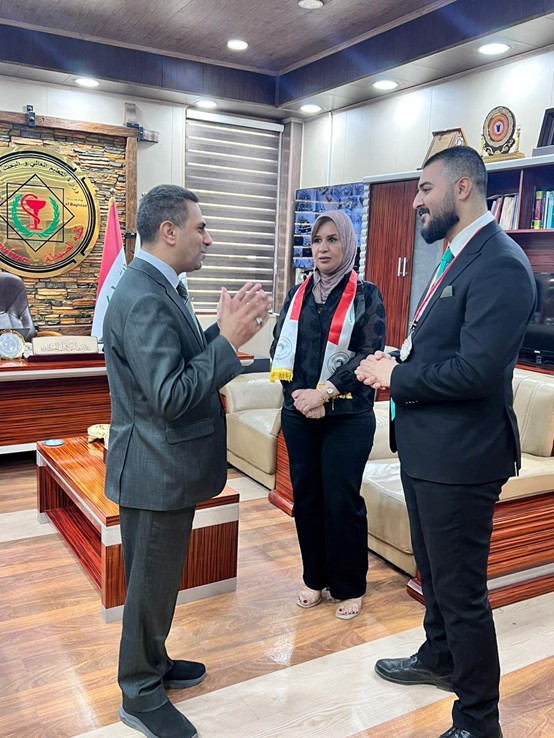 The College of Pharmacy had an active presence in the conference through student Fahad Ziyad and Mrs. Ensam Fuad Shakir, Head of the Voluntary Work Unit, emphasizing the college’s leading role in supporting humanitarian and community initiatives.