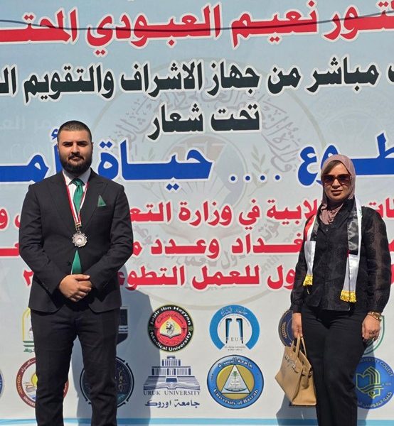 The University of Baghdad earned first place among Iraqi universities, in recognition of its outstanding efforts in promoting the culture of volunteer work and implementing humanitarian and awareness campaigns that serve society and align with the United Nations Sustainable Development Goals (SDGs).