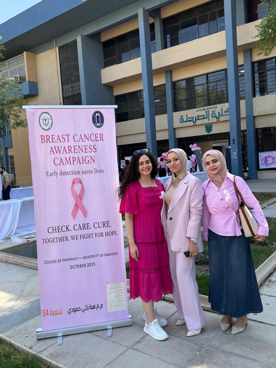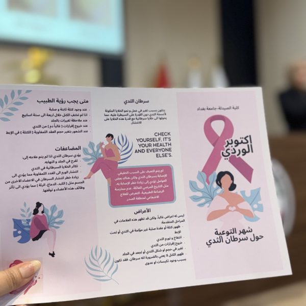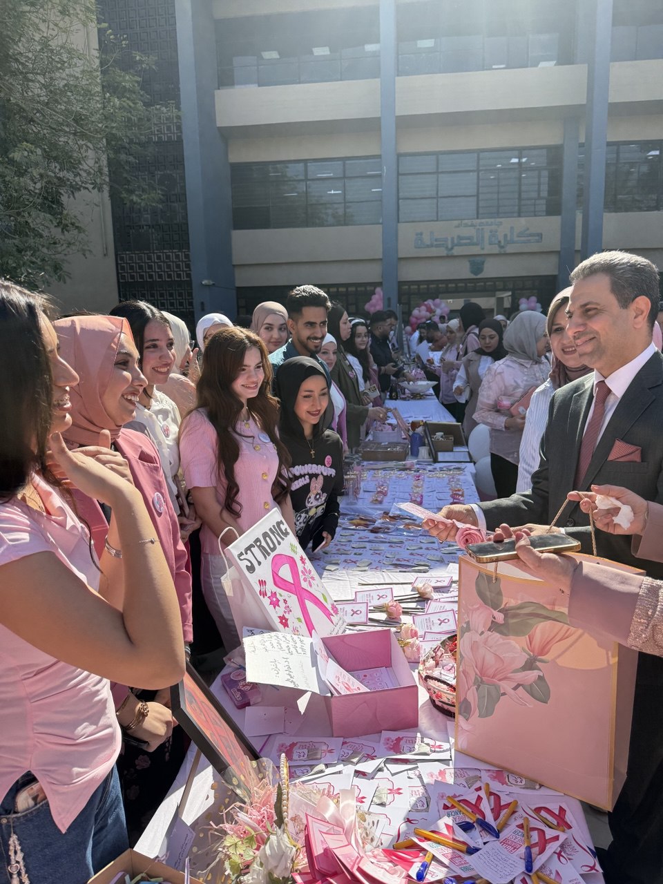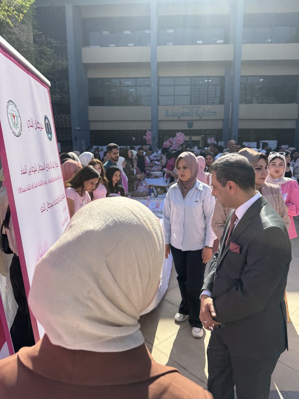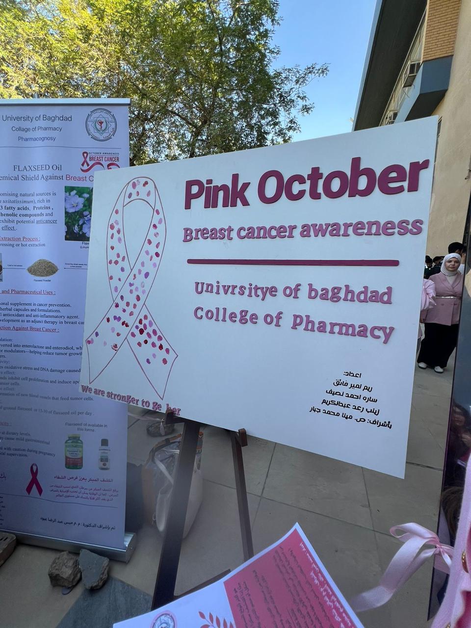 The University Of Baghdad College Of Pharmacy organized an awareness activity on October 28 focusing on the latest updates regarding breast cancer, under the patronage of the esteemed College Deanship and the supervision of the Women’s Affairs Unit, in cooperation with the University Psychological Counseling Unit, the Media and Government Communication Division, and the Voluntary Work Unit.