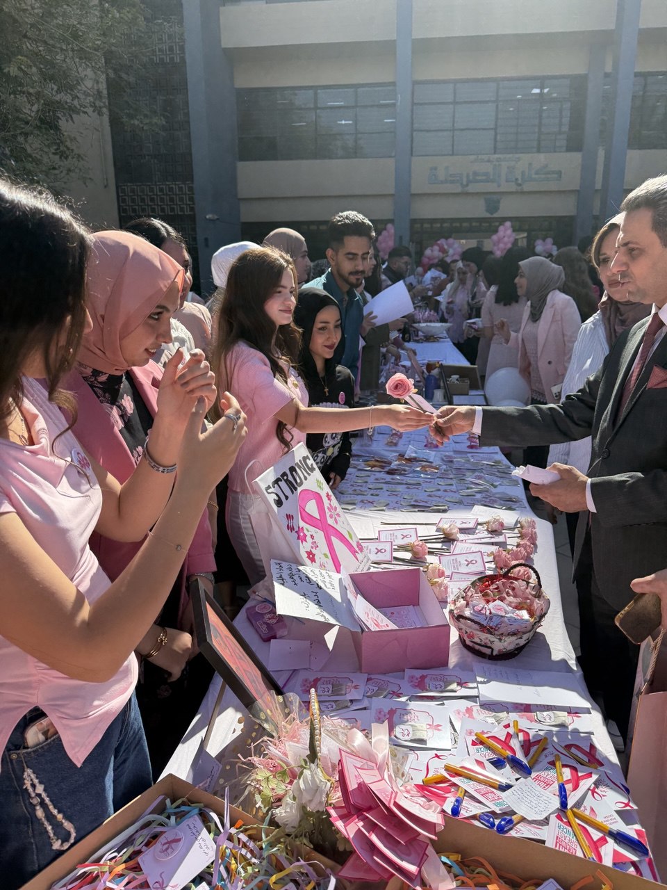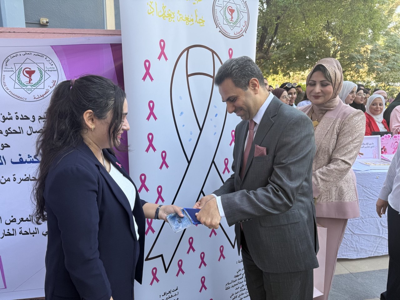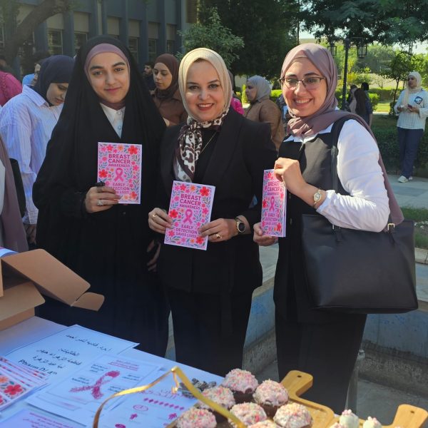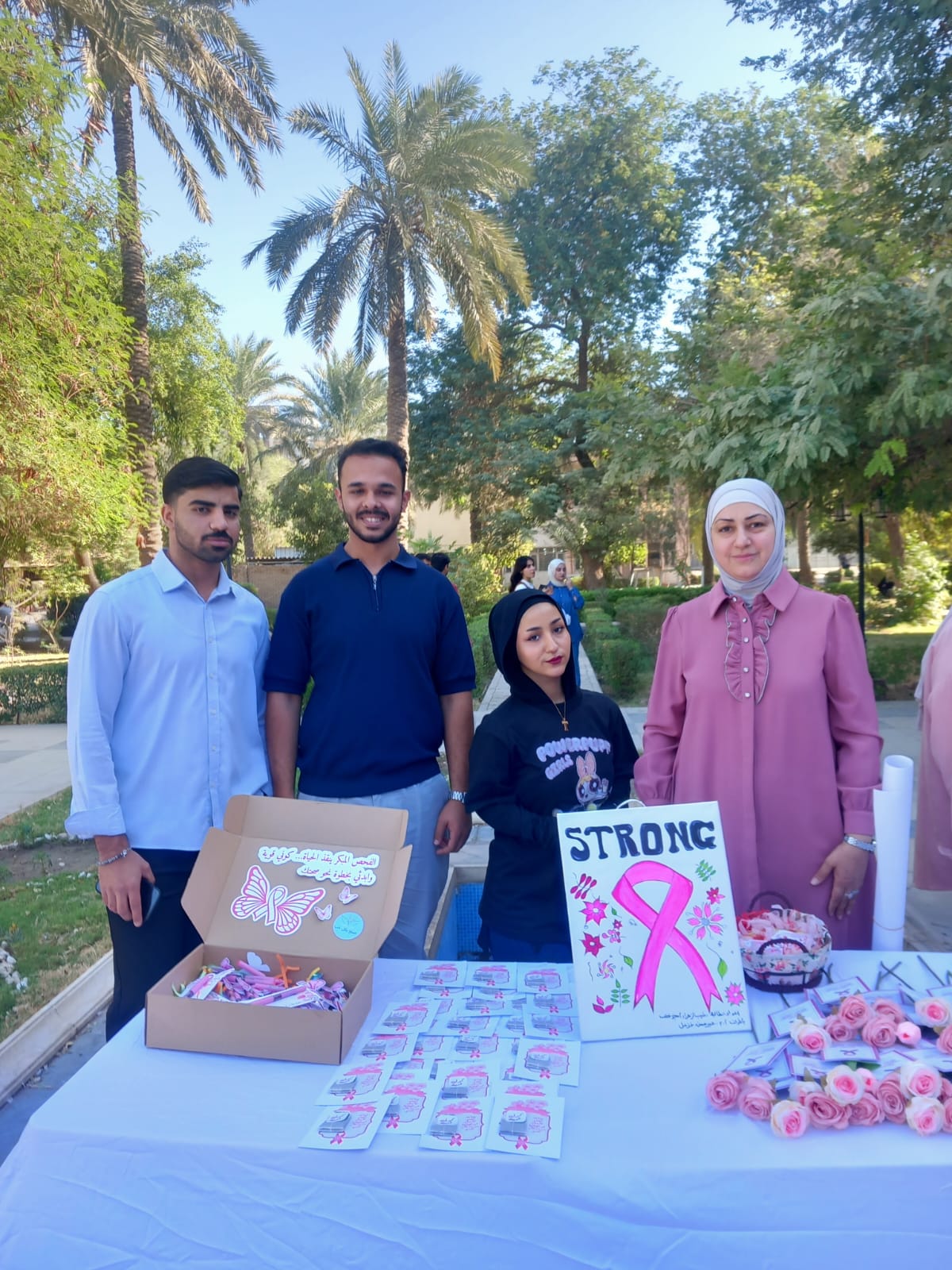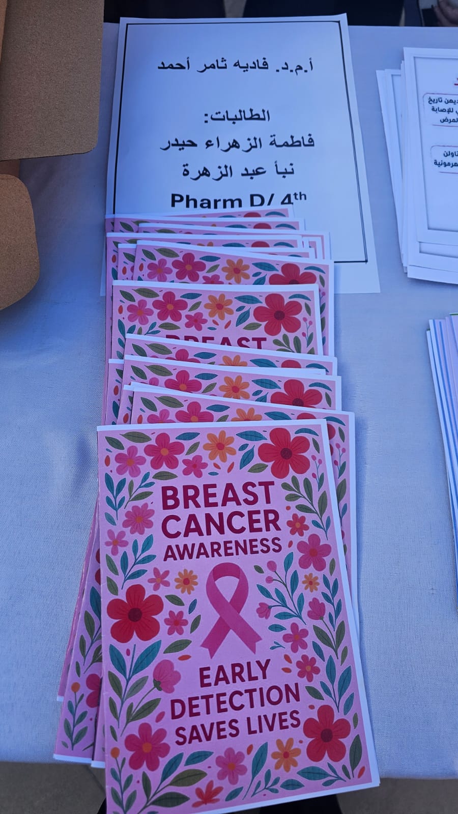 The University Of Baghdad College Of Pharmacy organized an awareness activity on October 28 focusing on the latest updates regarding breast cancer, under the patronage of the esteemed College Deanship and the supervision of the Women’s Affairs Unit, in cooperation with the University Psychological Counseling Unit, the Media and Government Communication Division, and the Voluntary Work Unit.
