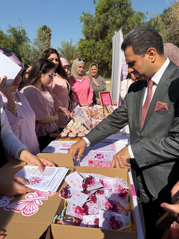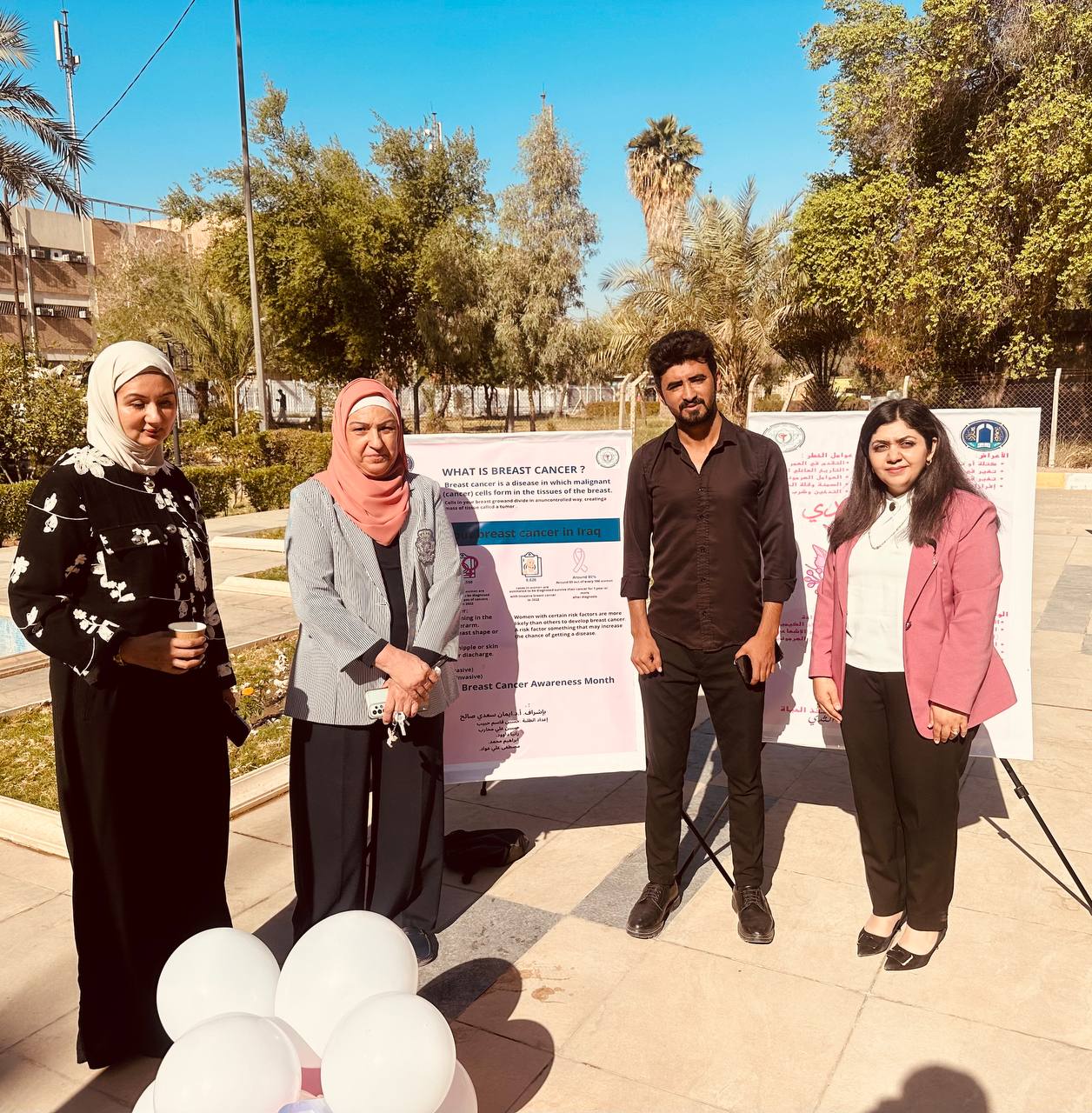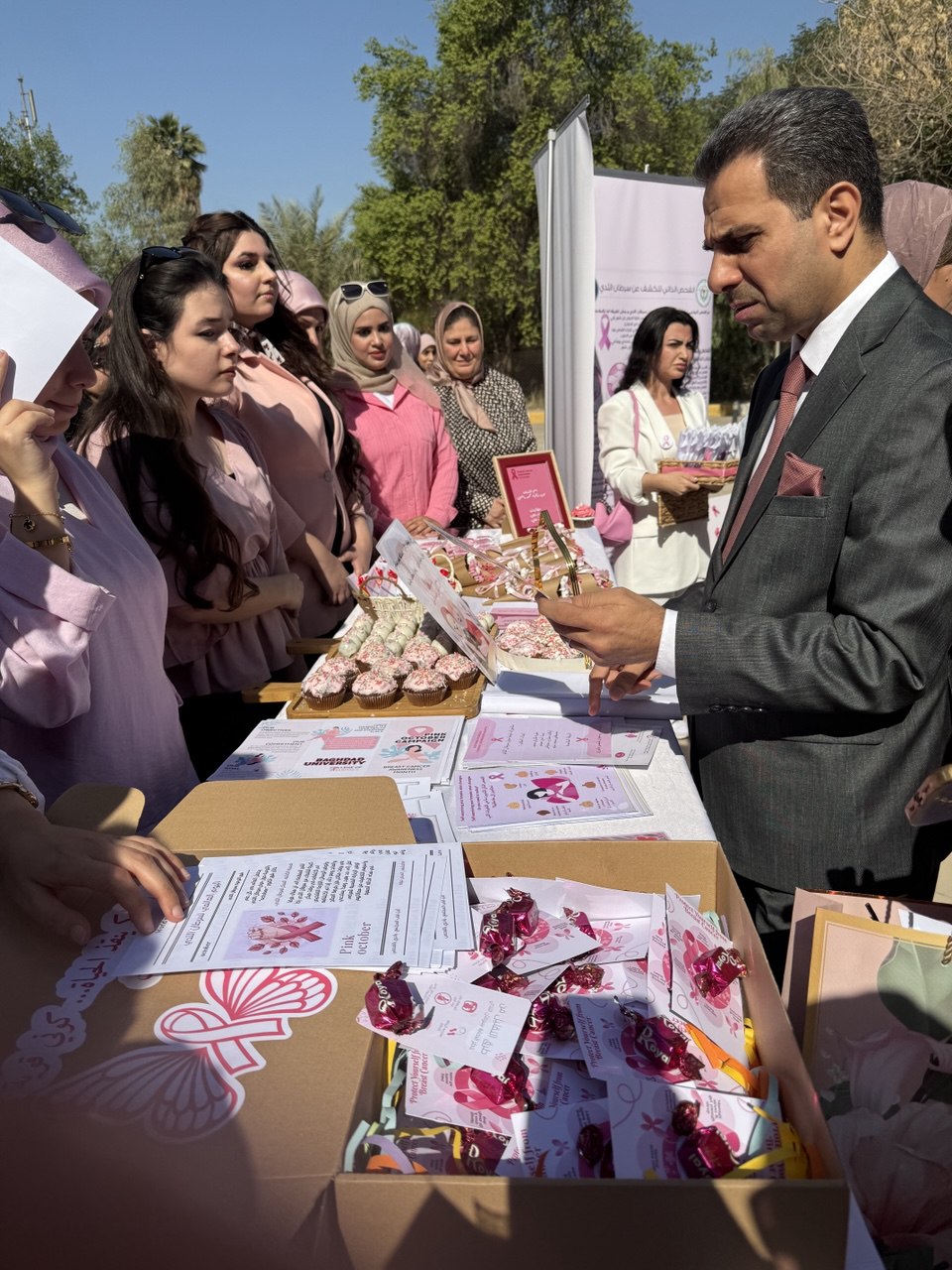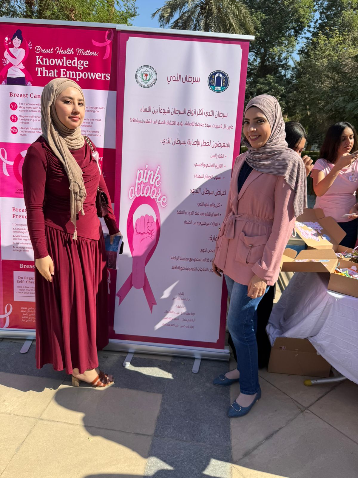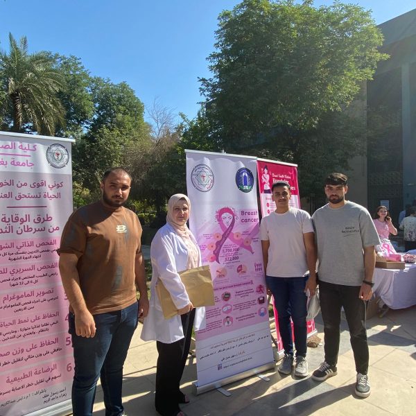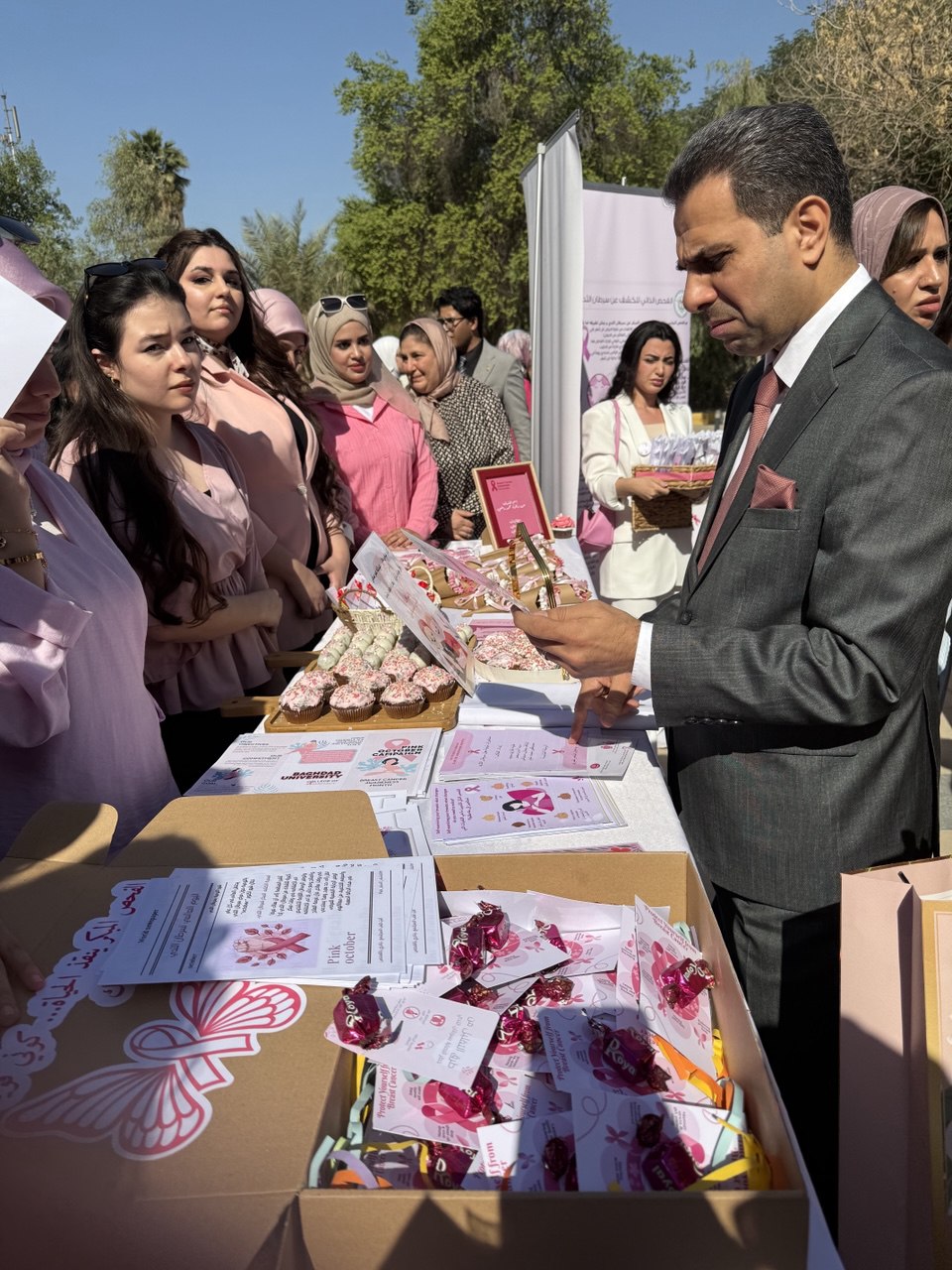 The University Of Baghdad College Of Pharmacy organized an awareness activity on October 28 focusing on the latest updates regarding breast cancer, under the patronage of the esteemed College Deanship and the supervision of the Women’s Affairs Unit, in cooperation with the University Psychological Counseling Unit, the Media and Government Communication Division, and the Voluntary Work Unit.