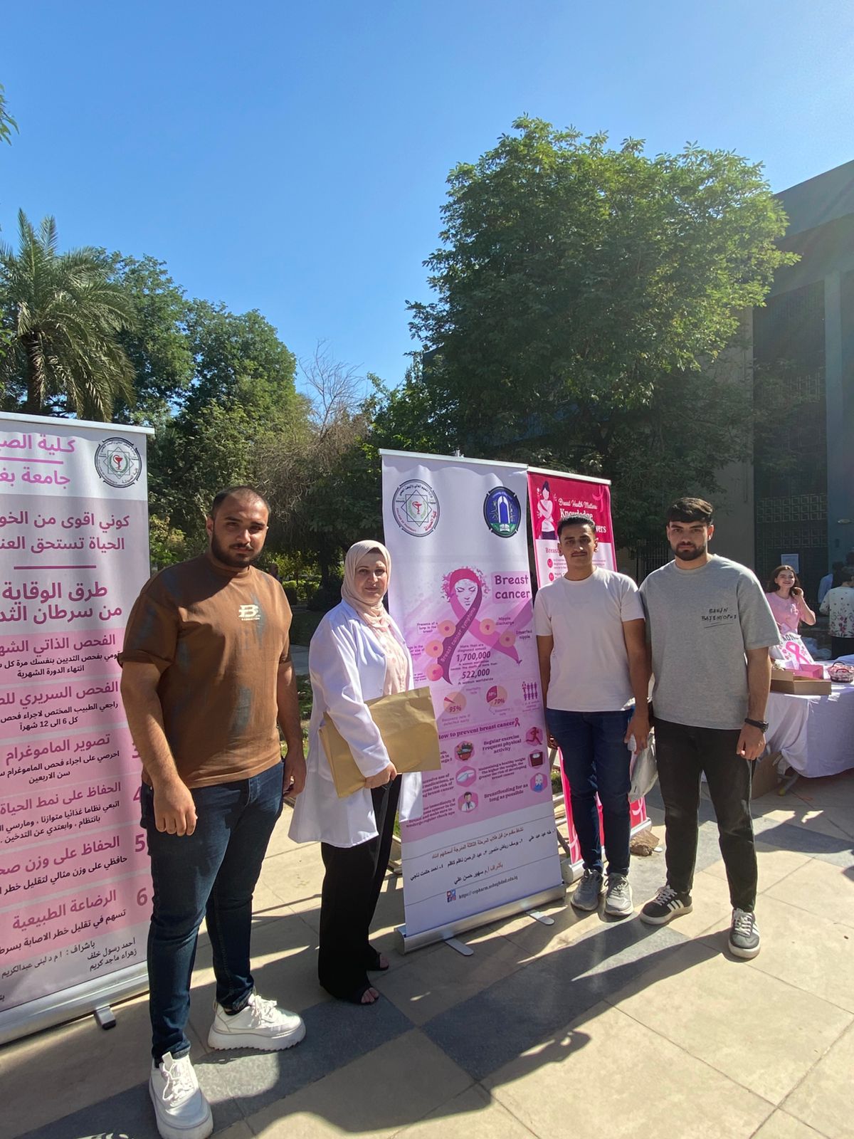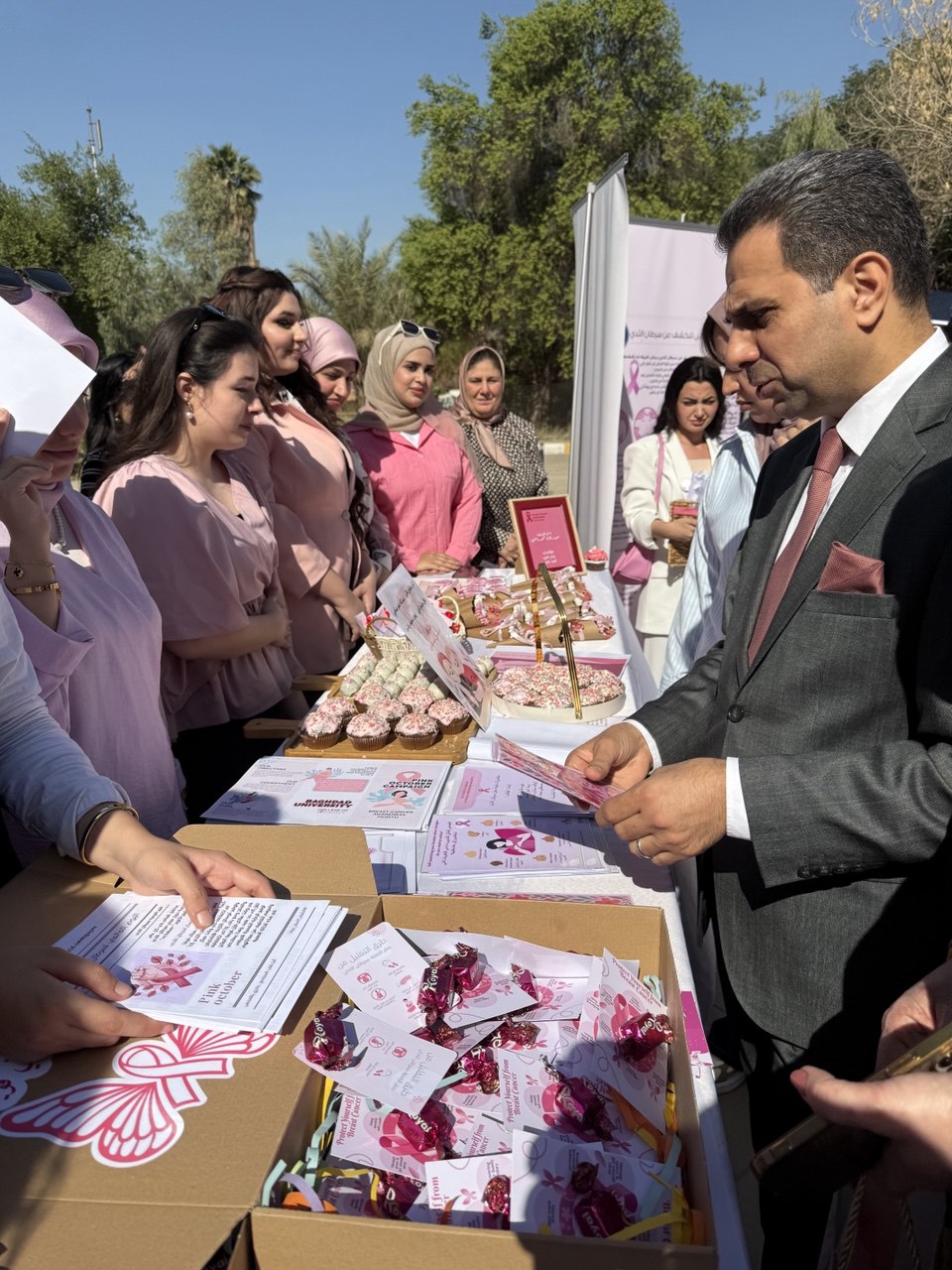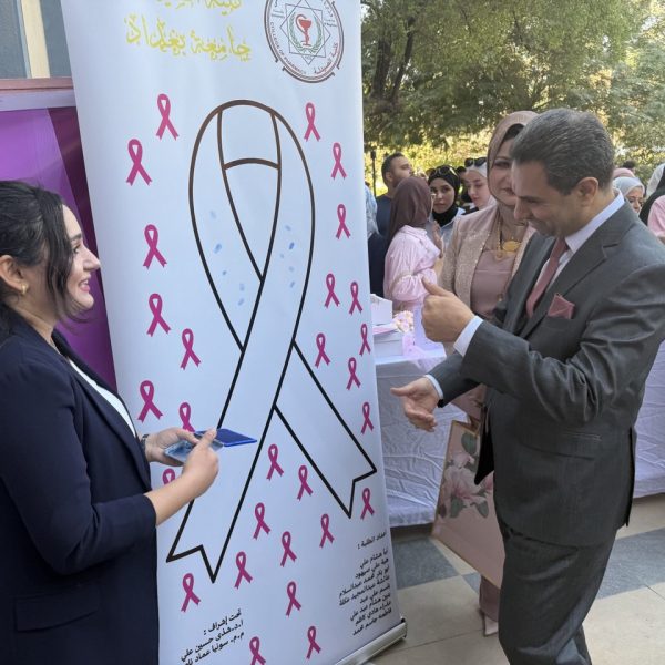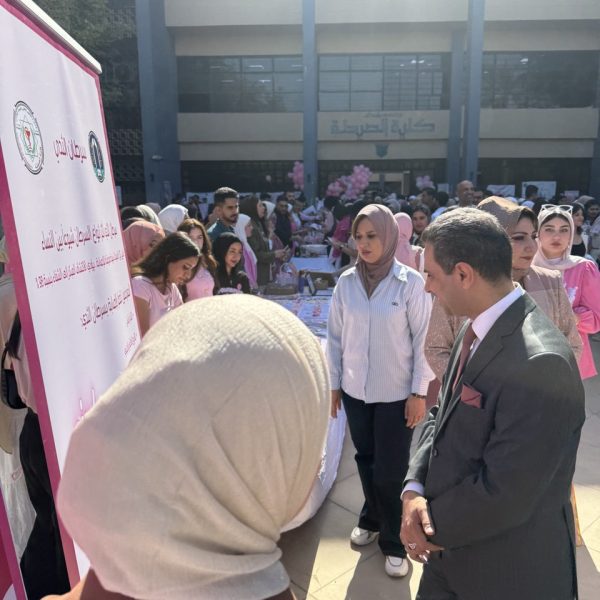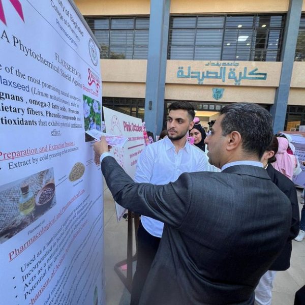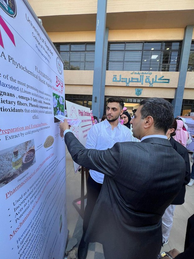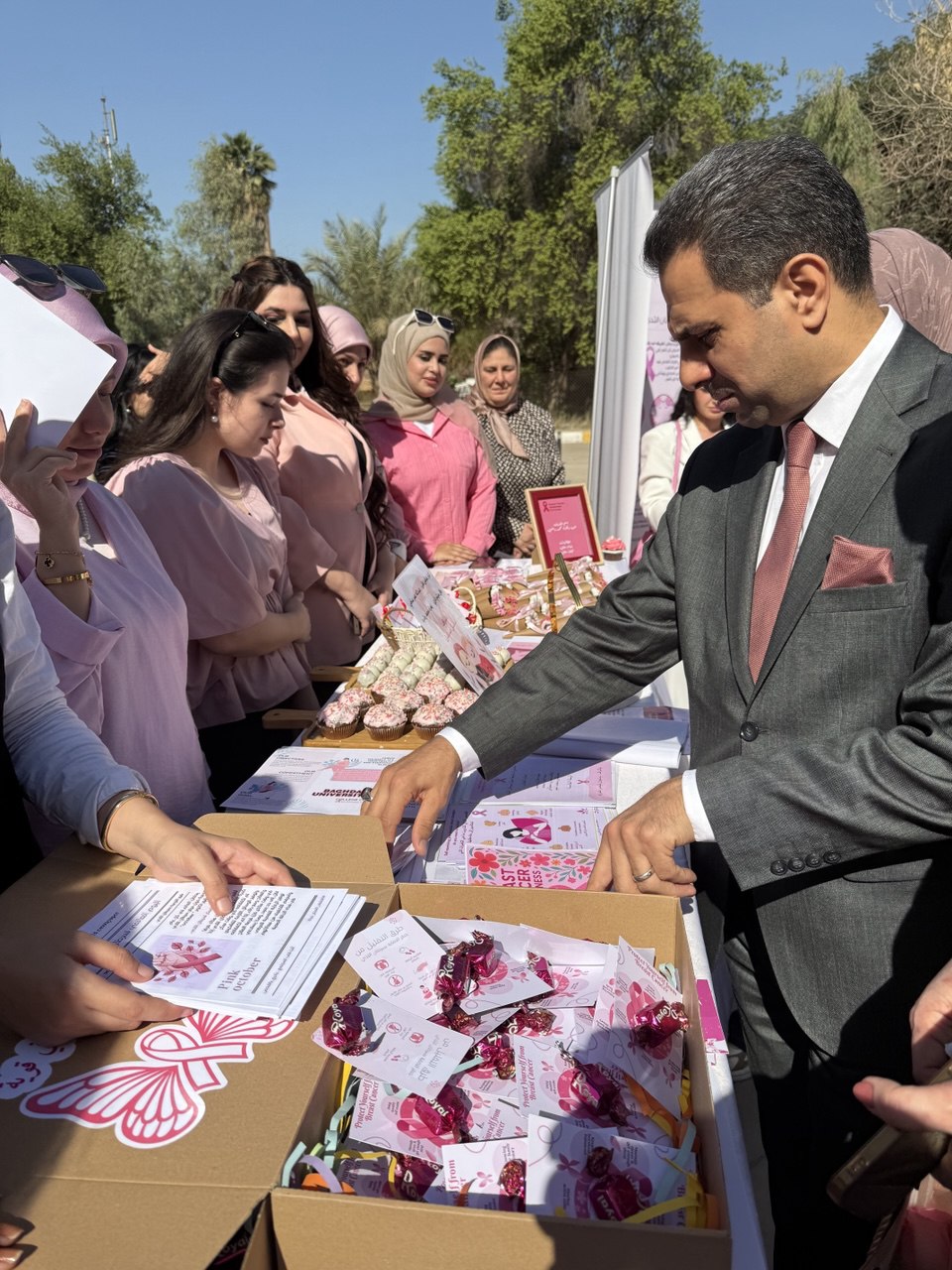 The University Of Baghdad College Of Pharmacy organized an awareness activity on October 28 focusing on the latest updates regarding breast cancer, under the patronage of the esteemed College Deanship and the supervision of the Women’s Affairs Unit, in cooperation with the University Psychological Counseling Unit, the Media and Government Communication Division, and the Voluntary Work Unit.