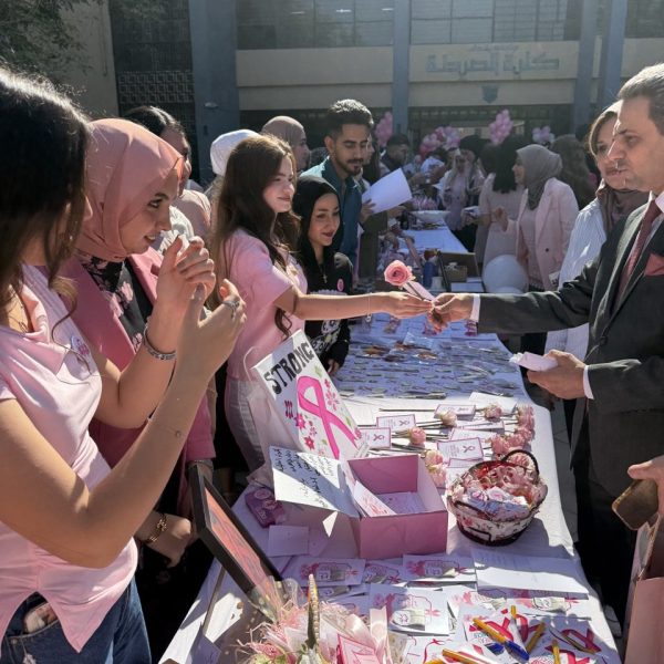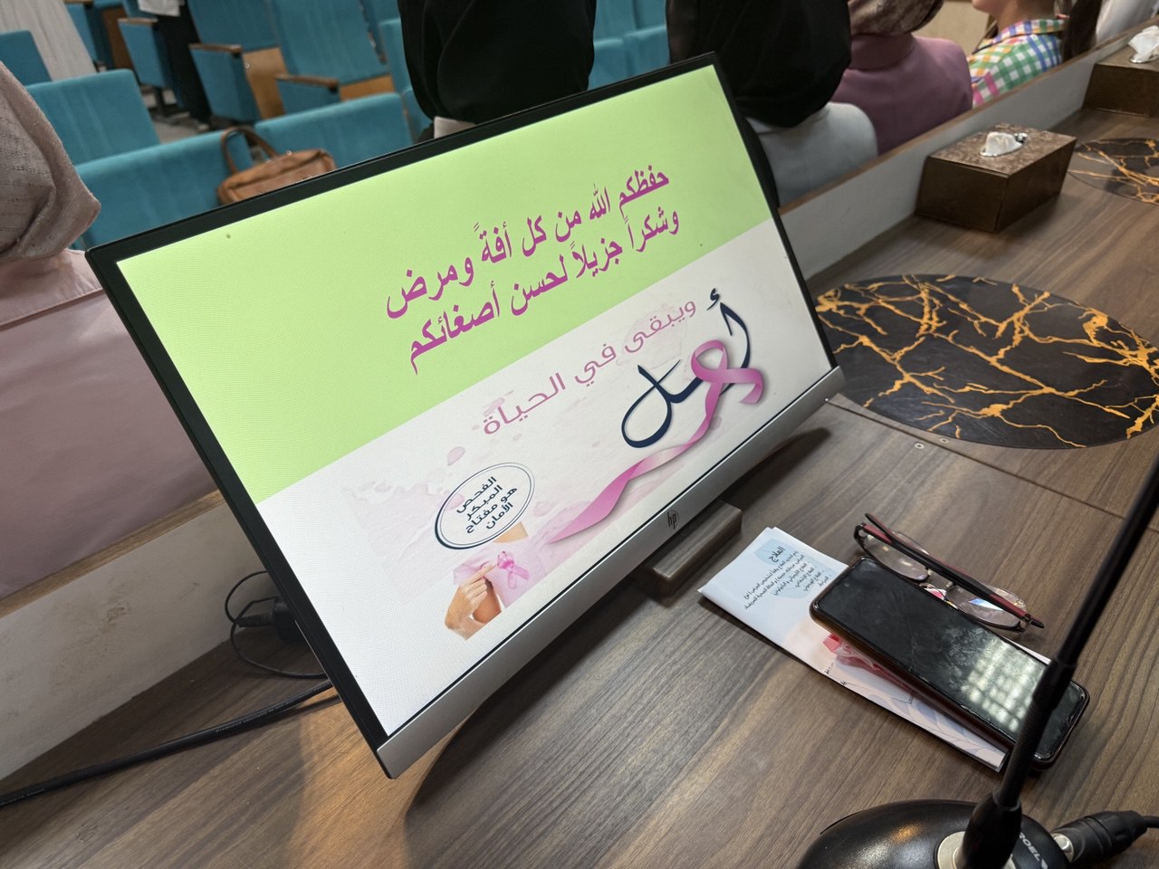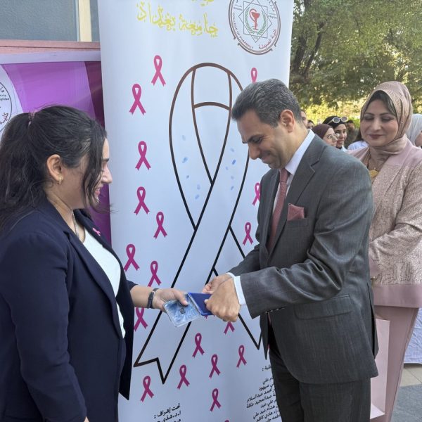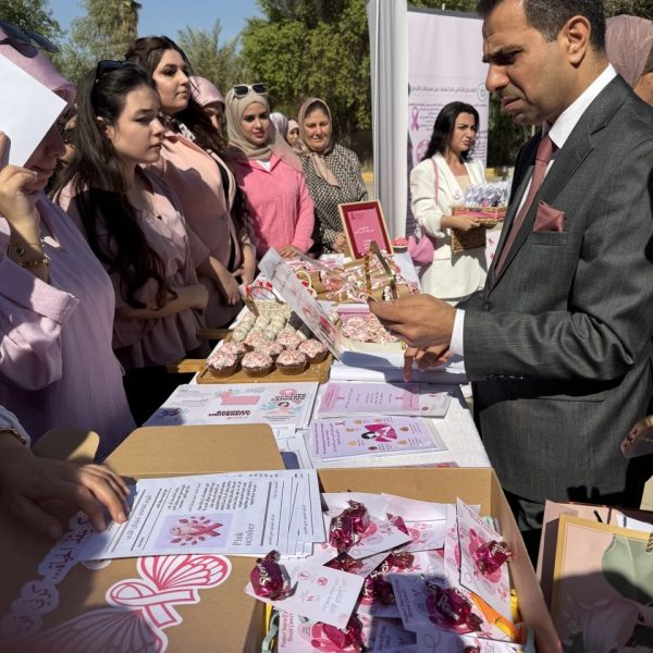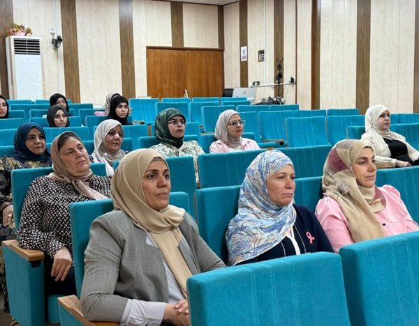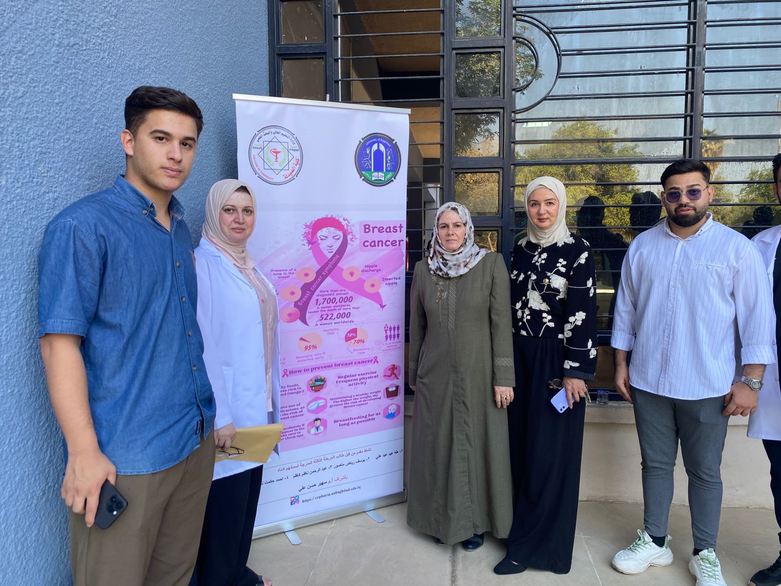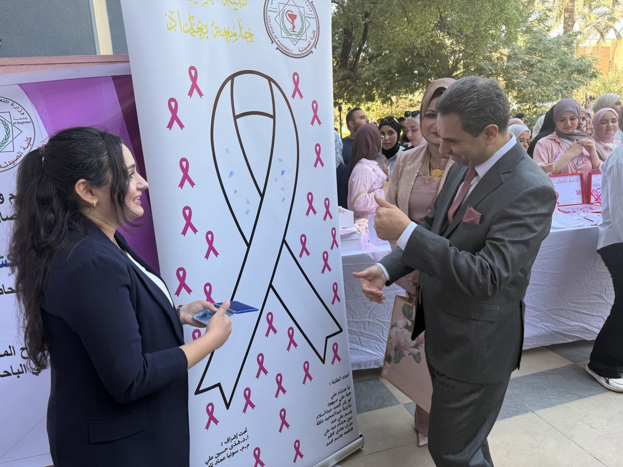 The University Of Baghdad College Of Pharmacy organized an awareness activity on October 28 focusing on the latest updates regarding breast cancer, under the patronage of the esteemed College Deanship and the supervision of the Women’s Affairs Unit, in cooperation with the University Psychological Counseling Unit, the Media and Government Communication Division, and the Voluntary Work Unit.