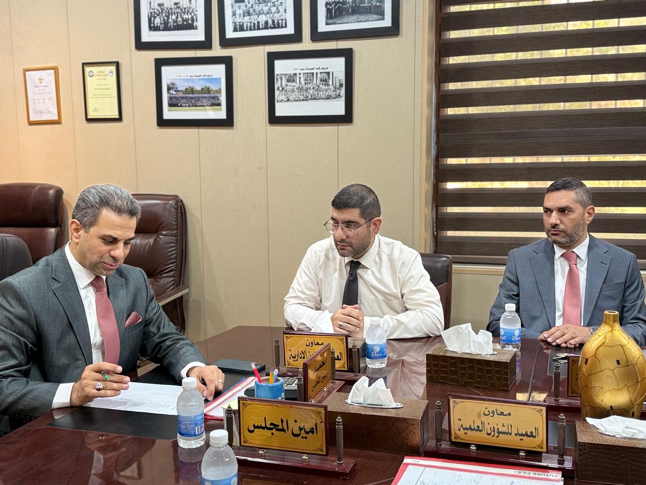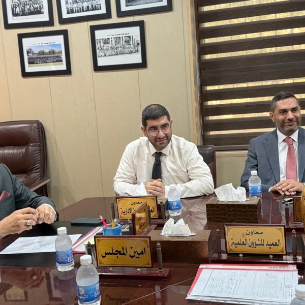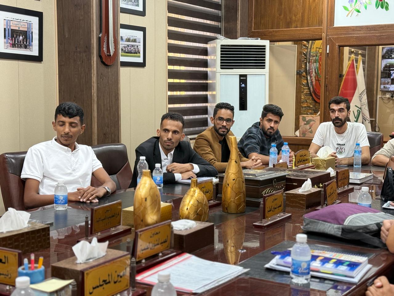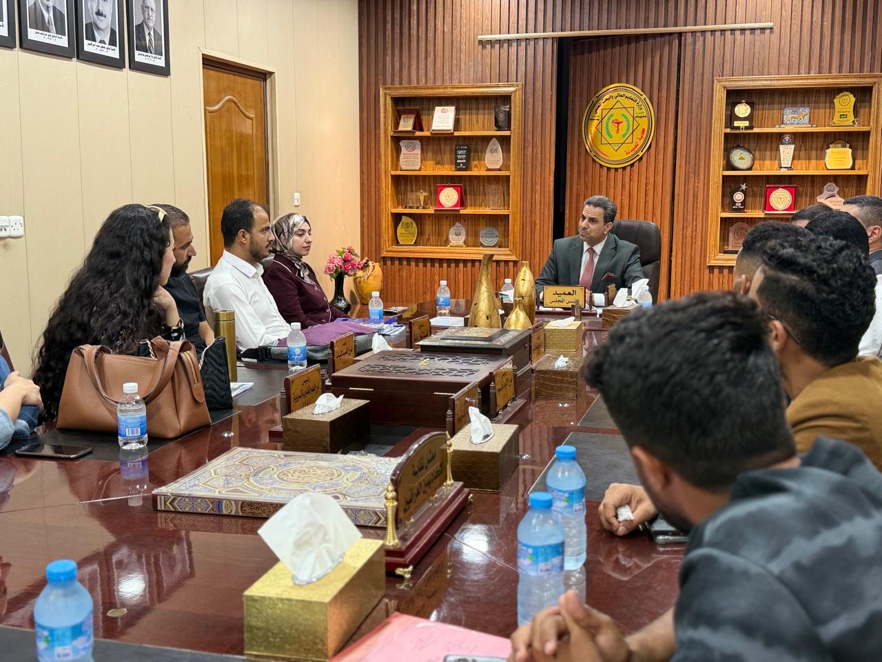 The Dean of the College of Pharmacy, Professor Dr. Sarmed H. Kathem Alkhateeb, held a meeting with Arab students enrolled in the “Study in Iraq” program, in the presence of Professor Dr. Munaf H. Abdulrazzaq, Assistant Dean for Scientific and Student Affairs, and Lecturer Dr. Ali Basim, Head of the Committee for the Follow-up of International Students’ Affairs.