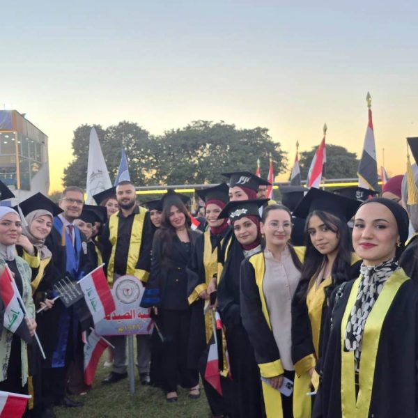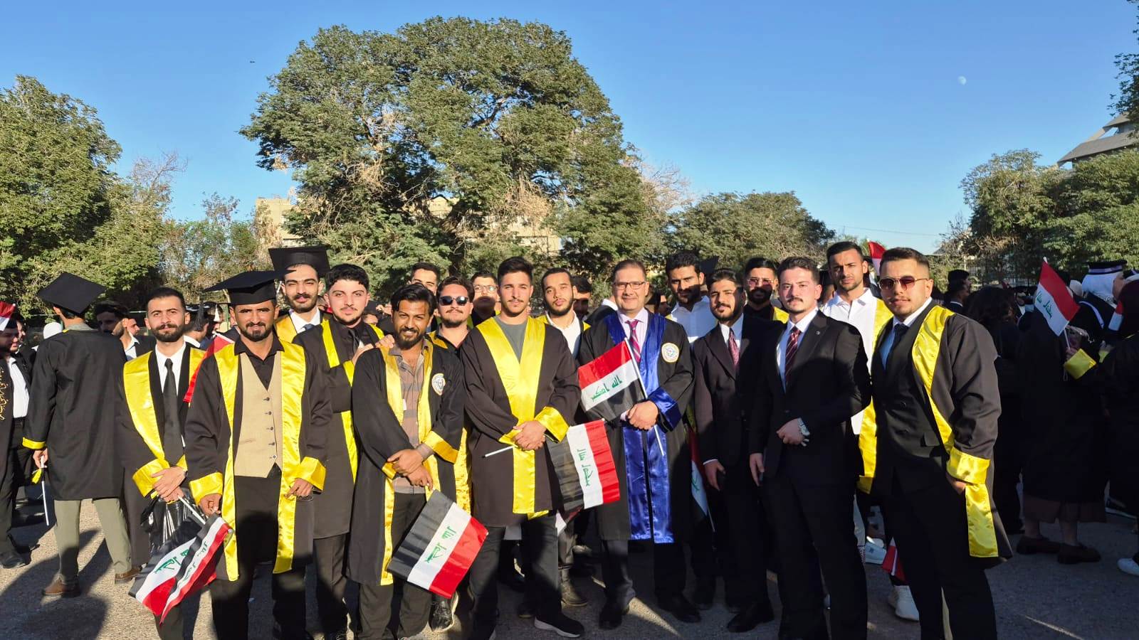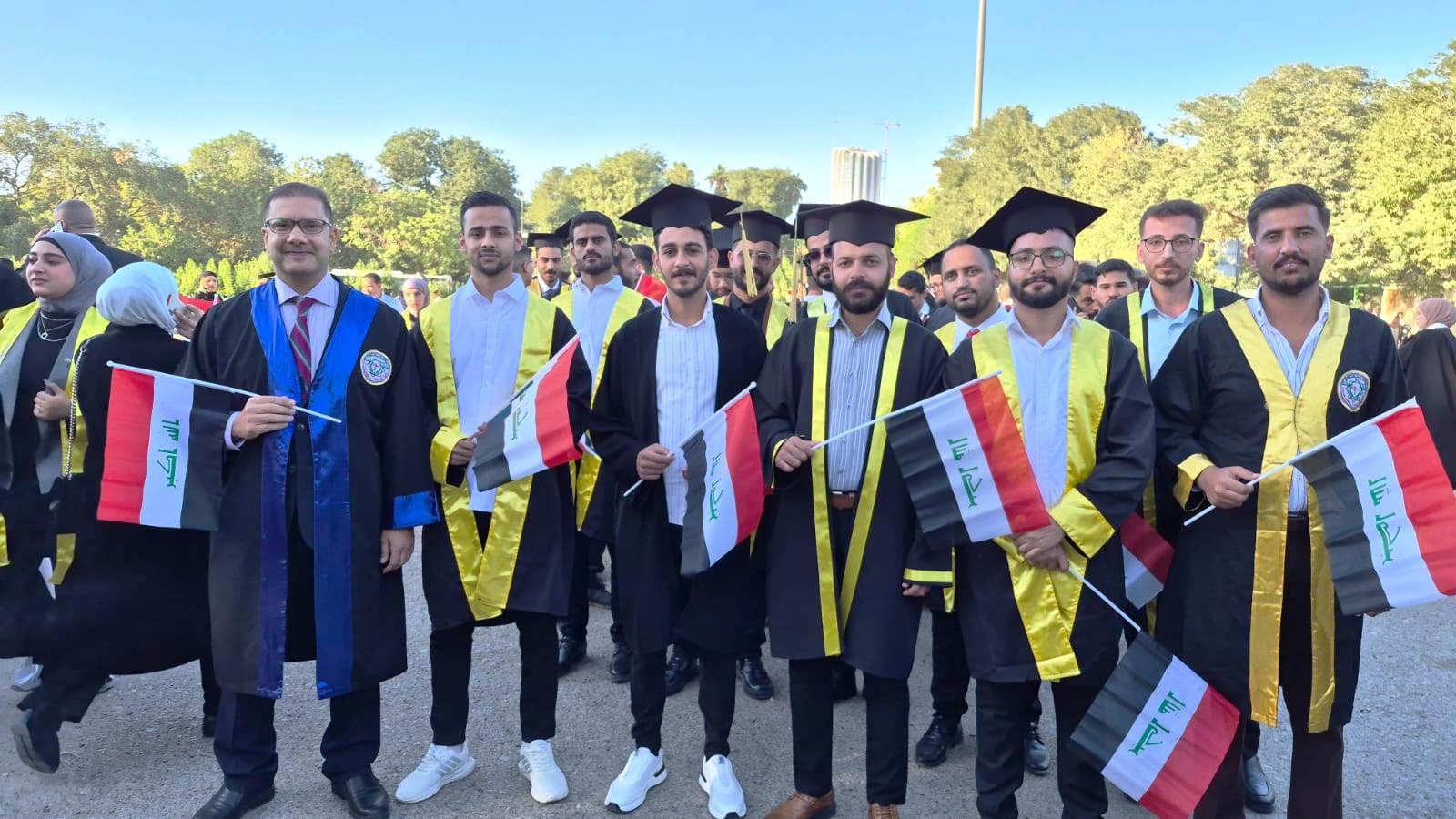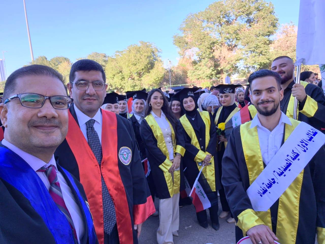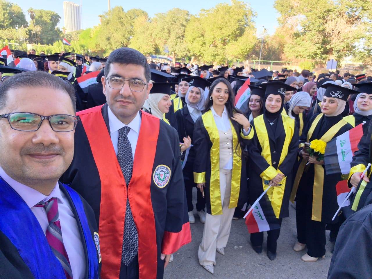 The central graduation ceremony for the 68th class of University of Baghdad graduates for the academic year 2024-2025, titled “Class of Excellence and Creativity” was held at the College of Physical Education and Sports Sciences. The event was under the patronage of the esteemed President of the University of Baghdad, Professor Dr. Bahaa Ibrahim Insaf, and in the presence of the honorable Minister of Higher Education and Scientific Research, Dr. Naeem Al-Aboudi. The ceremony was attended by the esteemed Dean of the College, Professor Dr. Sarmed H. Kathem Alkhateeb, in the company of the Assistant Dean for Scientific Affairs, Professor Dr. Munaf H. Abdul Razzaq, and a group of faculty members. The event featured several sections, the most significant of which was the honoring of top students by the Minister. The ceremony was marked by high-level organization and excellence. Our graduates from the 68th class were eager to attend the ceremony, celebrating alongside their families. At the conclusion of the ceremony, the dean praised the commitment of our students to attend, wishing them a successful and distinguished professional life.