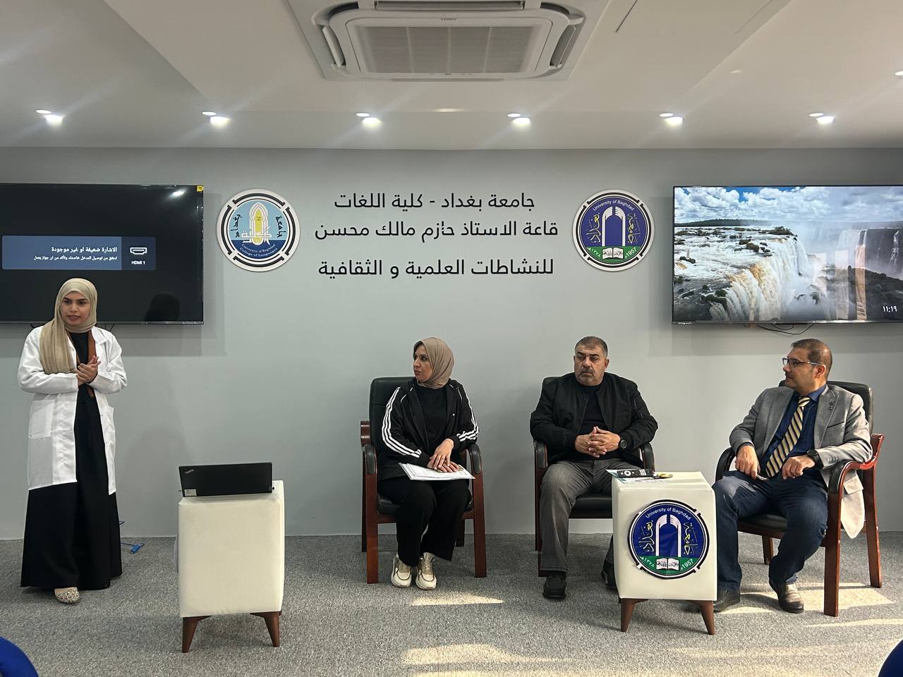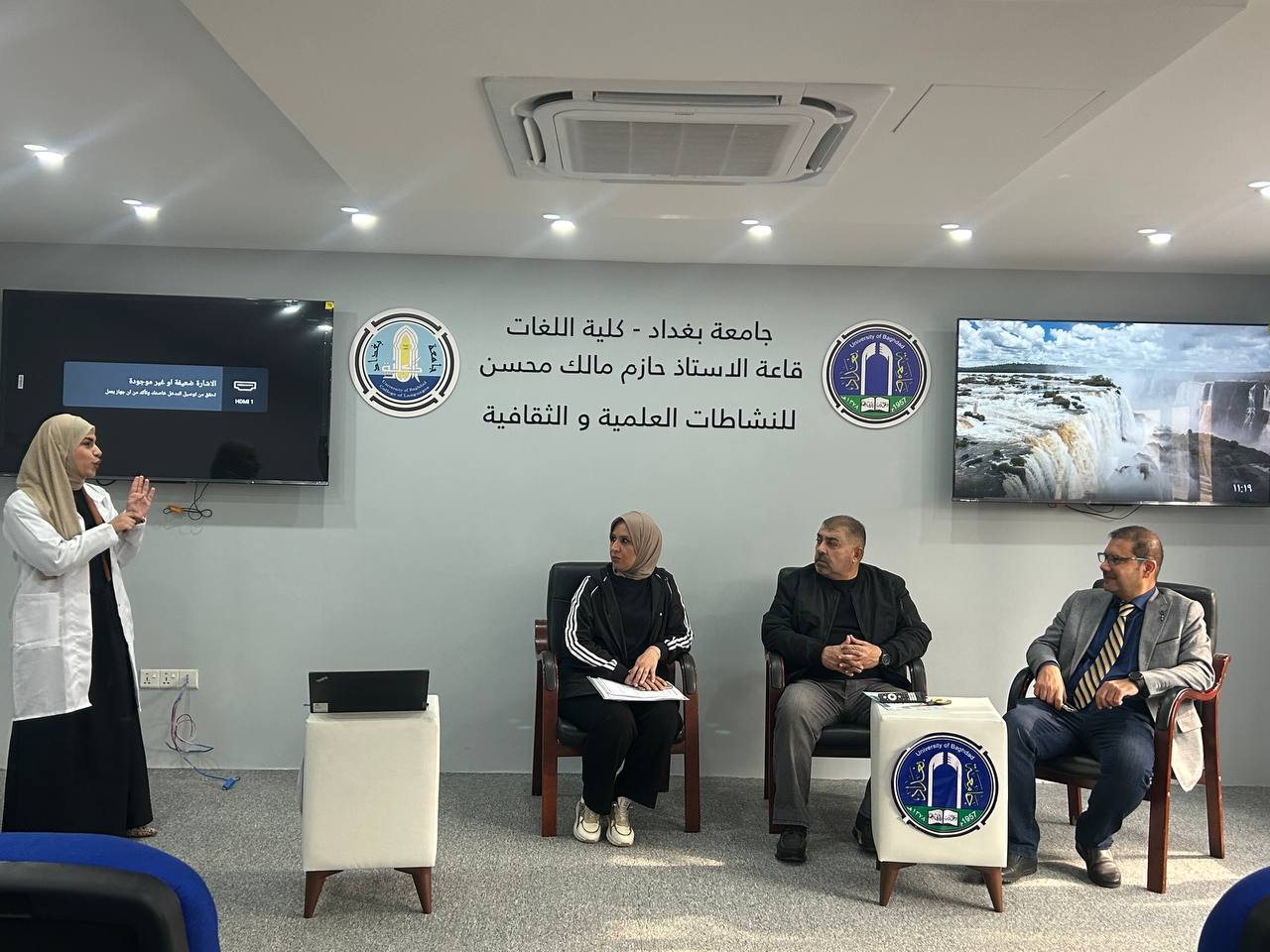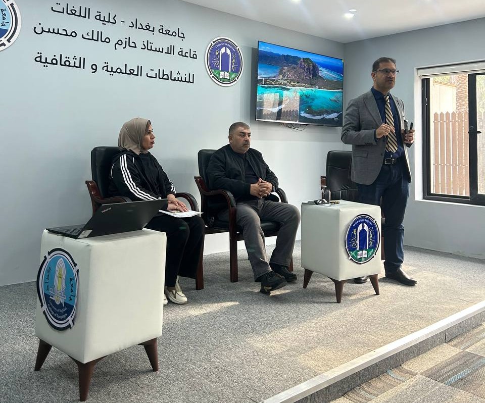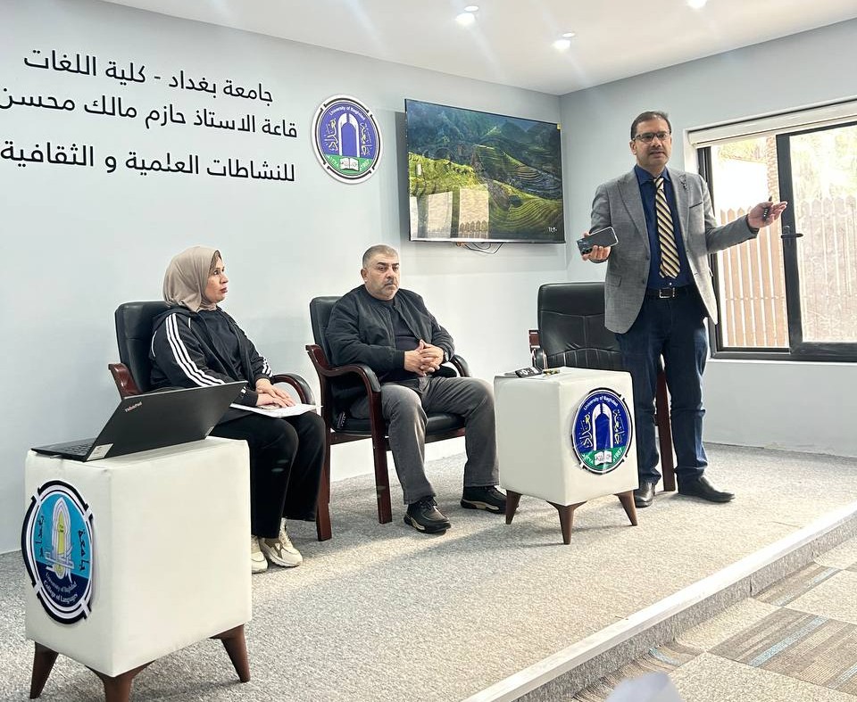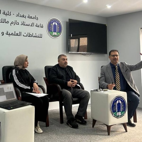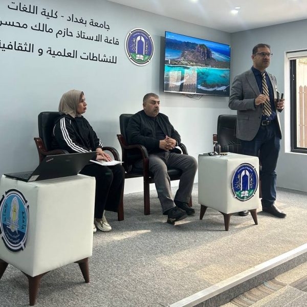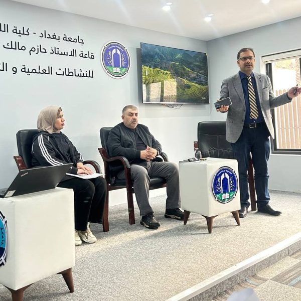 Fourth-year students and Pharm-D third-year students delivered lectures and provided advice to the students of the College of Languages in Dr. Hazim Hall. Their presentations addressed the main causes of bacterial resistance, its negative impact on patient health, the increased cost of treatment, and the emergence of new antibiotic-resistant bacterial strains. They emphasized that Iraq is witnessing a concerning rise in antimicrobial resistance due to the improper use of antibiotics.