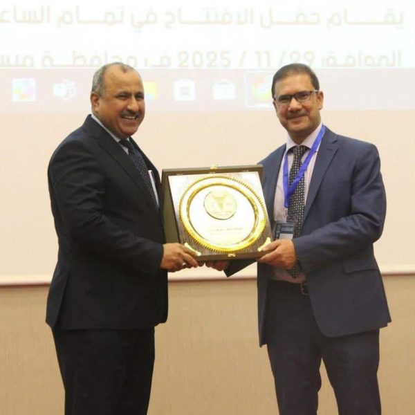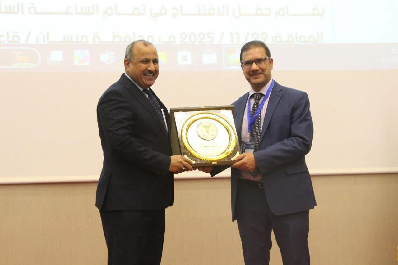 Pharmacist Hasan Ali Owayez and Sami Yassir, under the supervision of Assistant Professor Dr. Ali Lateef Jasim, participated on the second day of the conference, where they presented their research during the scientific sessions. Their participation witnessed active engagement and fruitful scientific discussions that contributed to the exchange of ideas and the enhancement of research collaboration among Iraqi pharmacy colleges. The participants received awards and certificates of appreciation from the President of the University of Maysan and the Dean of the College of Pharmacy.