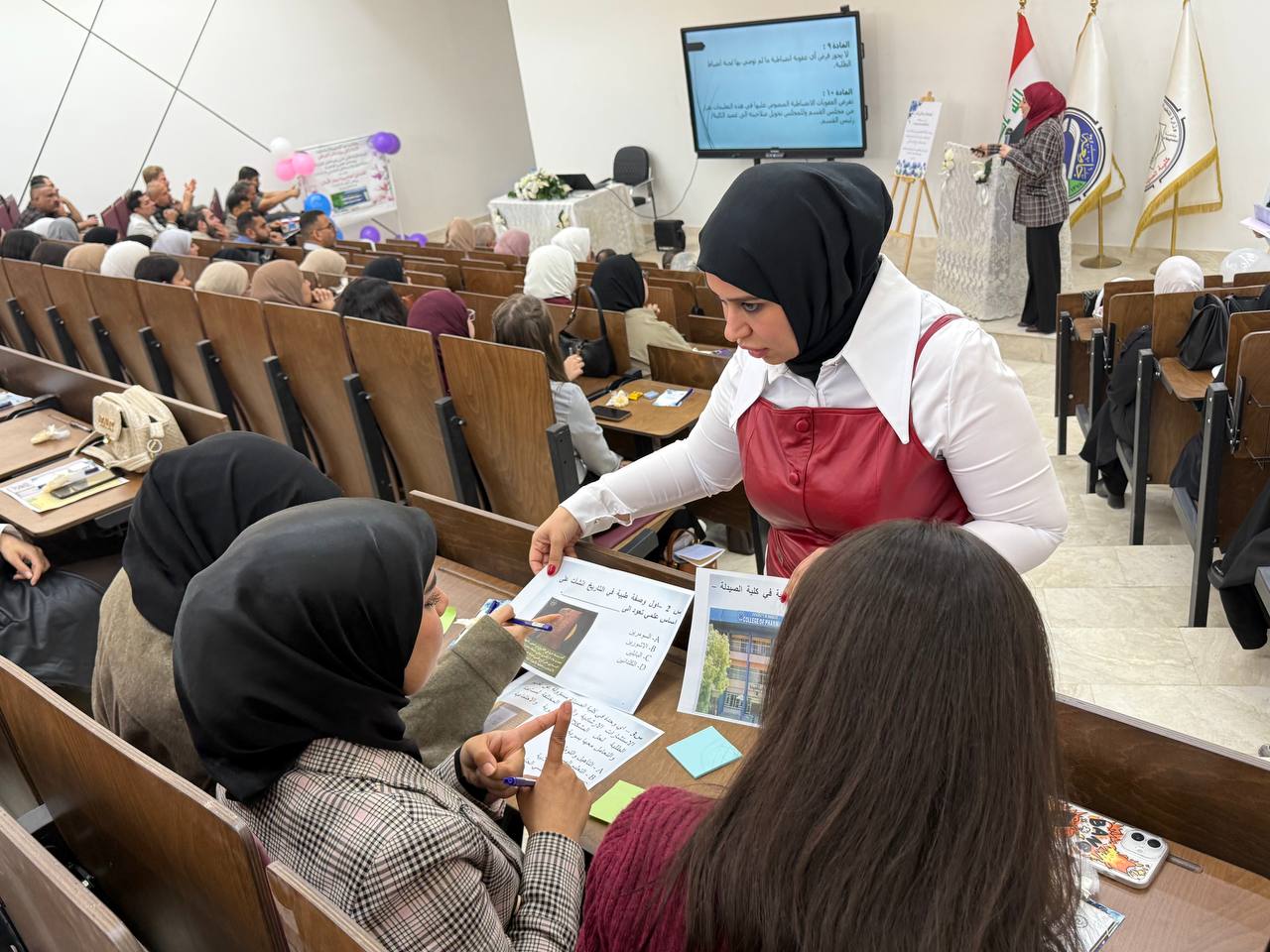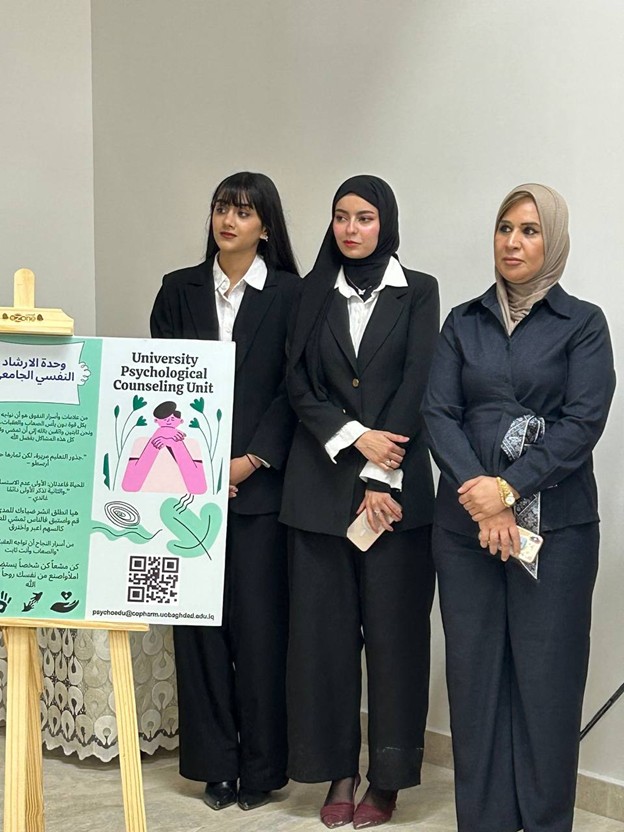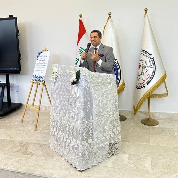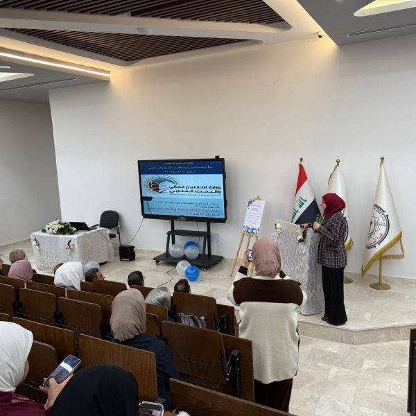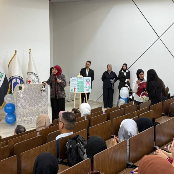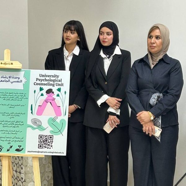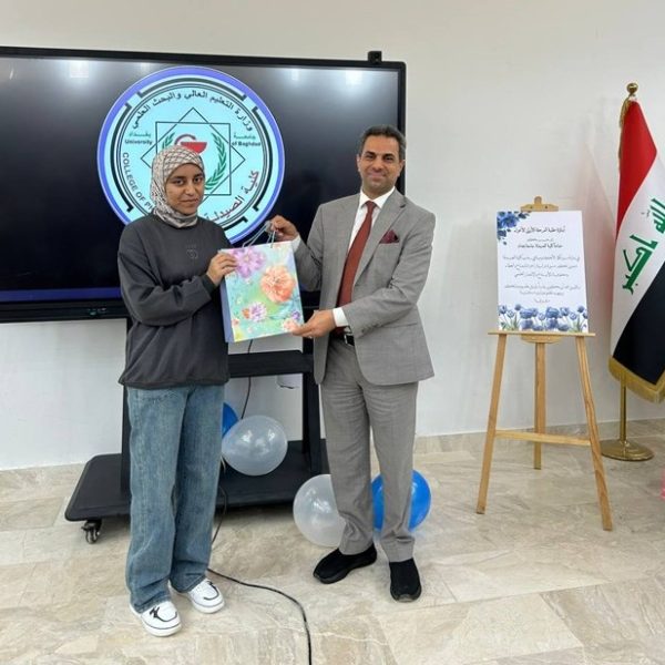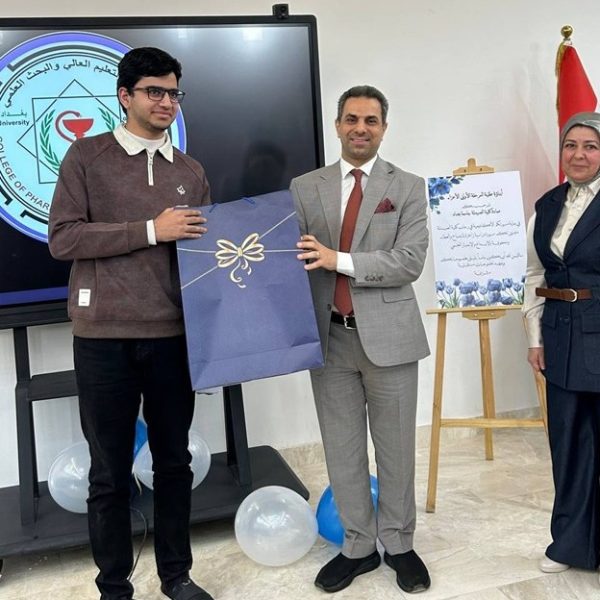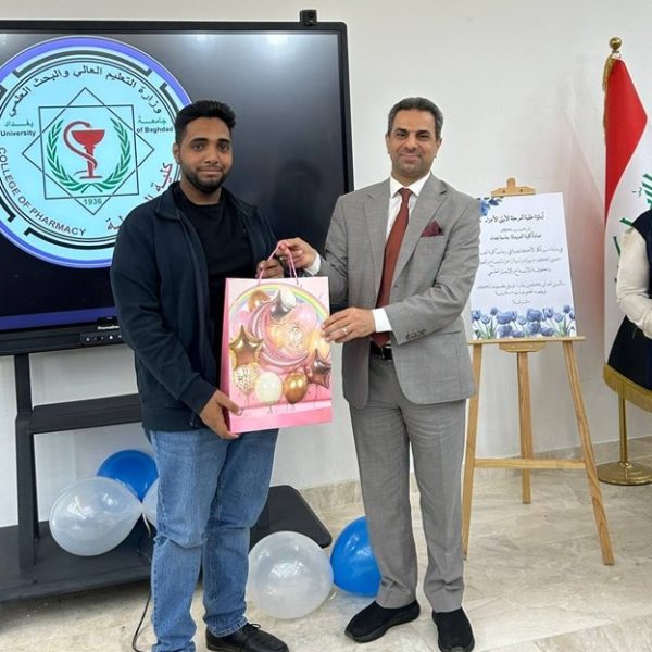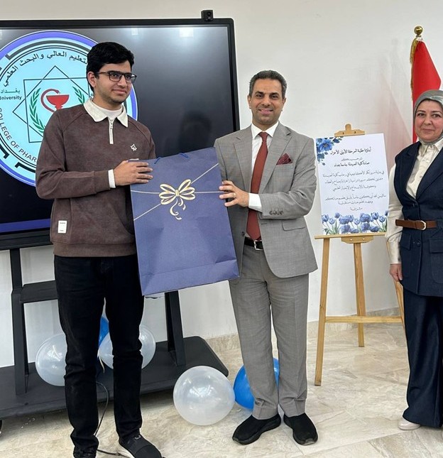 Under the supervision of the Dean of the College of Pharmacy, Professor Dr. Sarmed H. Kathem Alkhateeb, and in the presence of the Dean Assistants, Prof. Dr. Munaf H. Abdul Razzaq and. Prof. Dr. Shihab Hattab Mutlaq, along with a number of esteemed heads of scientific departments and faculty members, the University Psychological Counseling Unit, in collaboration with the Media and Public Relations Division and the Volunteer Work Unit, held a ceremony to welcome the first-stage students for the academic year 2025-2026. The event took place on Thursday, Dec. 4, 2025, in the Al-Quds Hall in the college. The ceremony began with the national anthem, followed by the recitation of verses from the Holy Qur’an delivered by third stage student Ali Mohammed Hamid, and the reading of Al-Fatiha for the souls of our martyrs. The event proceeded with a welcome speech to the students and a greeting to the attendees by the Head of the Media and Public Relations Division, Lec. Mais Fadhel Mohammed, along with an introductory video about the college. The Dean of the College then delivered a speech welcoming the new students, congratulating them on the start of the new academic year, and wishing them continued success. He emphasized the importance of academic excellence and adherence to university life rules, focusing on knowledge, skills, and behavior. The Dean Assistants for Scientific and Student Affairs, Prof. Dr. Munaf H. Abdul Razzaq, introduced the students to their rights and duties, emphasizing the importance of attending classes and adhering to the college regulations. He wished them a successful academic year. The ceremony included a series of educational and awareness lectures on various topics, such as “A Glimpse into the History of Pharmacy in Mesopotamia,” “Introduction to the University Psychological Counseling Unit and University Life,” and “University Campus Rules and Student Behavior.” These lectures were delivered by Asst. Prof. Dr. Lubna Abdul Karim, the Head of the University Psychological Counseling Unit, and Unit member Asst. Prof. Dr. Basma Zuheir Mohammed. The ceremony concluded with honoring the Dean of the College in appreciation of his significant efforts and continued support in advancing the students’ academic level. A student competition was then held, during which several prizes were distributed to the winners, adding a joyful and interactive atmosphere to the ceremony.