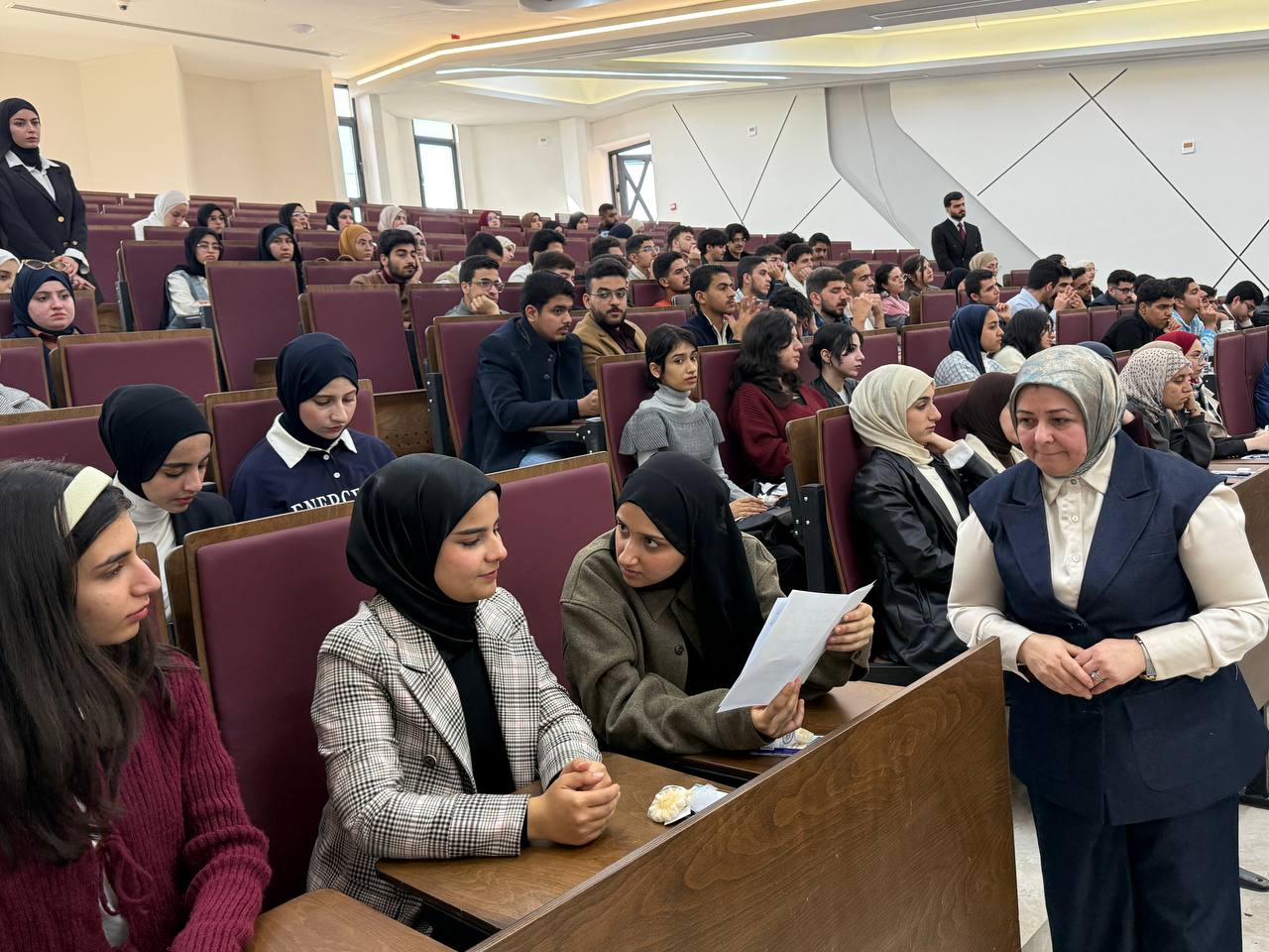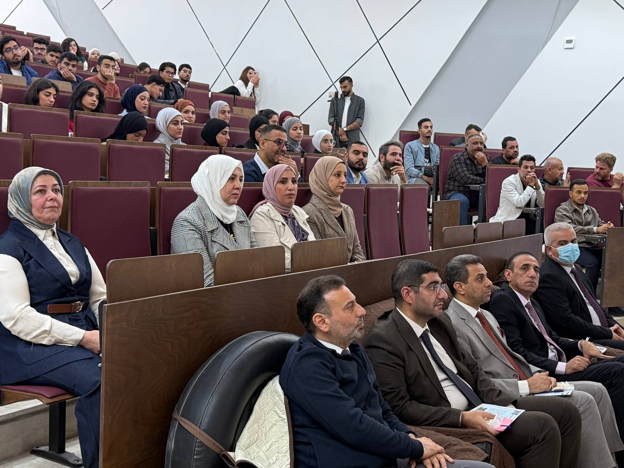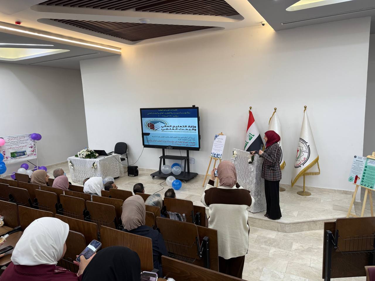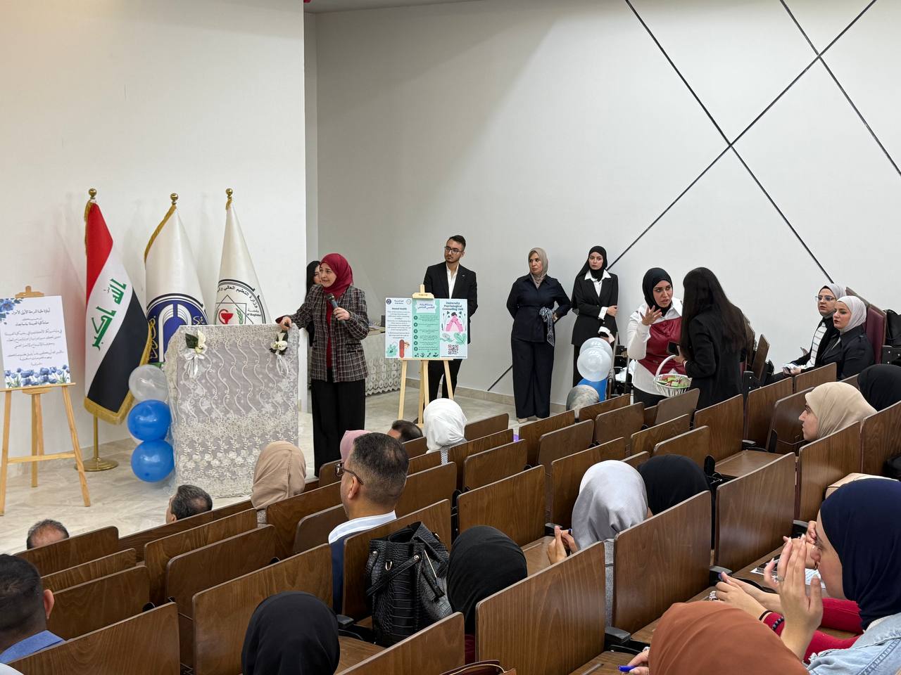 Under the supervision of the Dean of the College of Pharmacy, Professor Dr. Sarmed H. Kathem Alkhateeb, and in the presence of the Dean Assistants, Prof. Dr. Munaf H. Abdul Razzaq and. Prof. Dr. Shihab Hattab Mutlaq, along with a number of esteemed heads of scientific departments and faculty members, the University Psychological Counseling Unit, in collaboration with the Media and Public Relations Division and the Volunteer Work Unit, held a ceremony to welcome the first-stage students for the academic year 2025-2026. The event took place on Thursday, Dec. 4, 2025, in the Al-Quds Hall in the college. The ceremony began with the national anthem, followed by the recitation of verses from the Holy Qur’an delivered by third stage student Ali Mohammed Hamid, and the reading of Al-Fatiha for the souls of our martyrs. The event proceeded with a welcome speech to the students and a greeting to the attendees by the Head of the Media and Public Relations Division, Lec. Mais Fadhel Mohammed, along with an introductory video about the college. The Dean of the College then delivered a speech welcoming the new students, congratulating them on the start of the new academic year, and wishing them continued success. He emphasized the importance of academic excellence and adherence to university life rules, focusing on knowledge, skills, and behavior. The Dean Assistants for Scientific and Student Affairs, Prof. Dr. Munaf H. Abdul Razzaq, introduced the students to their rights and duties, emphasizing the importance of attending classes and adhering to the college regulations. He wished them a successful academic year. The ceremony included a series of educational and awareness lectures on various topics, such as “A Glimpse into the History of Pharmacy in Mesopotamia,” “Introduction to the University Psychological Counseling Unit and University Life,” and “University Campus Rules and Student Behavior.” These lectures were delivered by Asst. Prof. Dr. Lubna Abdul Karim, the Head of the University Psychological Counseling Unit, and Unit member Asst. Prof. Dr. Basma Zuheir Mohammed. The ceremony concluded with honoring the Dean of the College in appreciation of his significant efforts and continued support in advancing the students’ academic level. A student competition was then held, during which several prizes were distributed to the winners, adding a joyful and interactive atmosphere to the ceremony.
