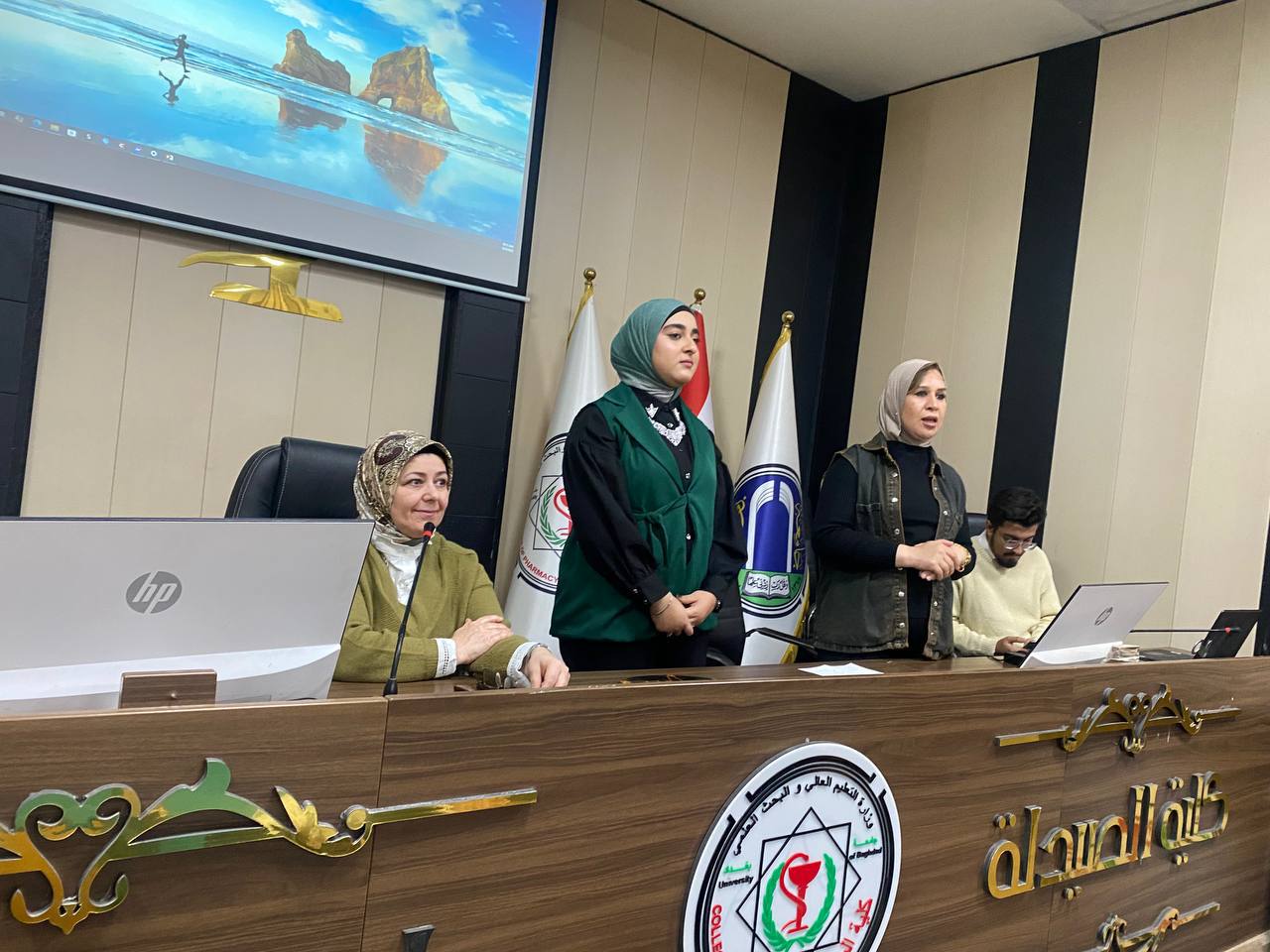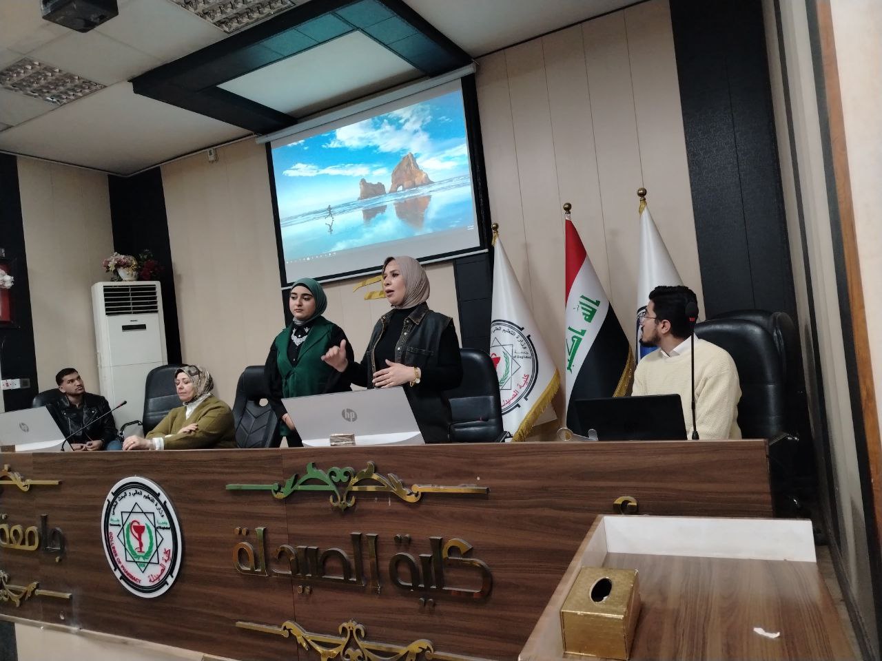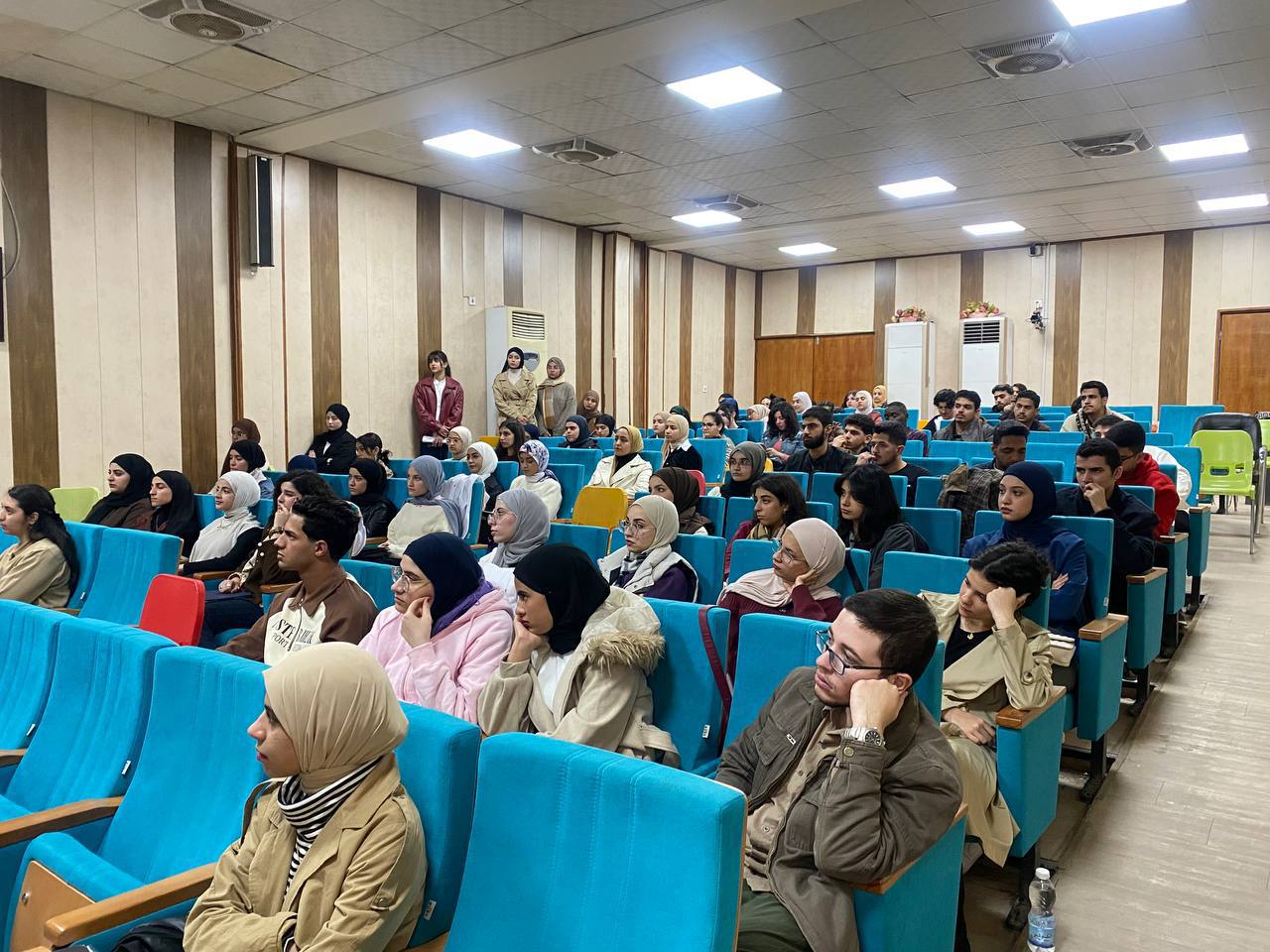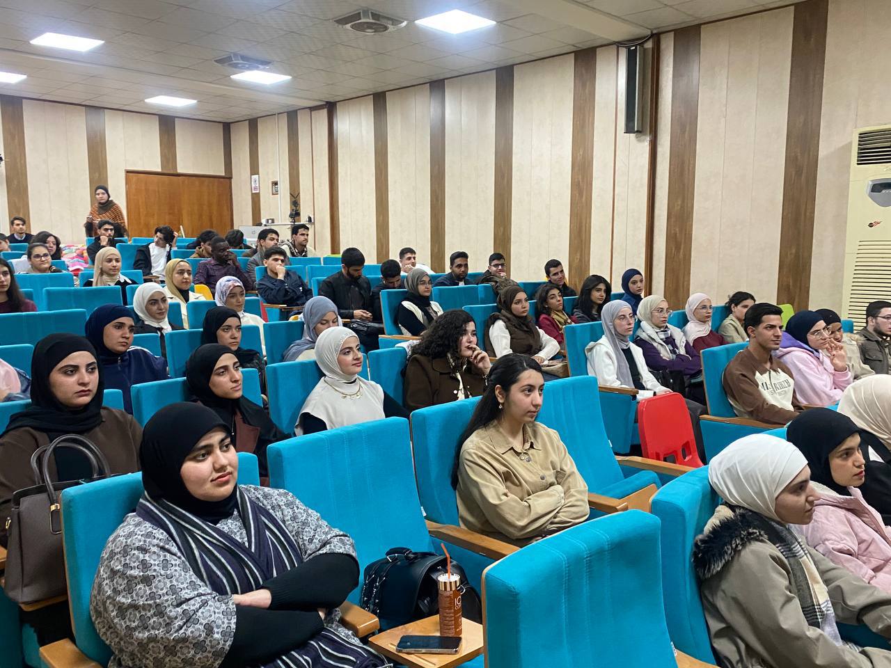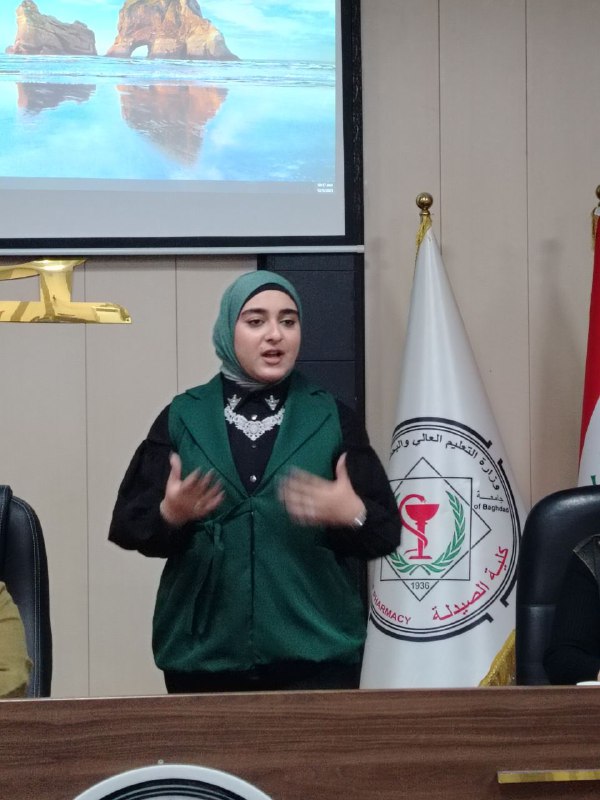 Under the supervision of the Dean of the College of Pharmacy, Professor Dr. Sarmed H. Kathem Alkhateeb, the University Psychological Counseling Unit at the College of Pharmacy/ University of Baghdad held an in-person educational workshop, as part of the activities of the Guidance Week, entitled “The Importance of Volunteer Work in University Life” delivered by Senior Sports Trainer Ansam Fouad Shakir and fifth-year student Azal Sabah Nouri.