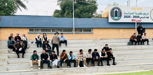 Under the patronage of the Dean of the College of Pharmacy, Professor Dr. Sarmed H. Kathem Alkhateeb, the Student Activities Division at the University of Baghdad, College of Pharmacy, organized a competitive match on Wednesday, 7/12/2025, between the fourth-year team and the second-year team as part of the Five-a-Side Football Championship on the college’s sports field, amid enthusiastic and highly anticipated attendance from students.