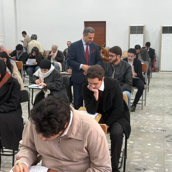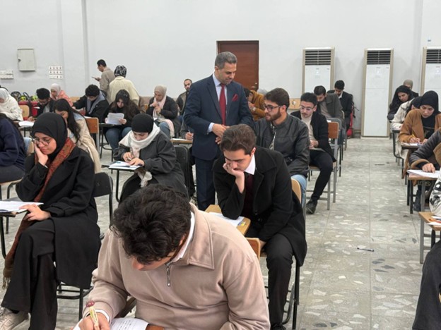 The esteemed Dean, Prof. Dr. Sarmed H. Kathem Alkhateeb, and the esteemed Assistant Dean for Scientific Affairs and Students, Prof. Dr. Munaf H. Abdul Razzaq, inspected the final examinations for the undergraduate stages. The tour aimed to review the progress of the examination process and ensure that all requirements necessary for smooth and well-organized exams were provided, while addressing any challenges that students might face.